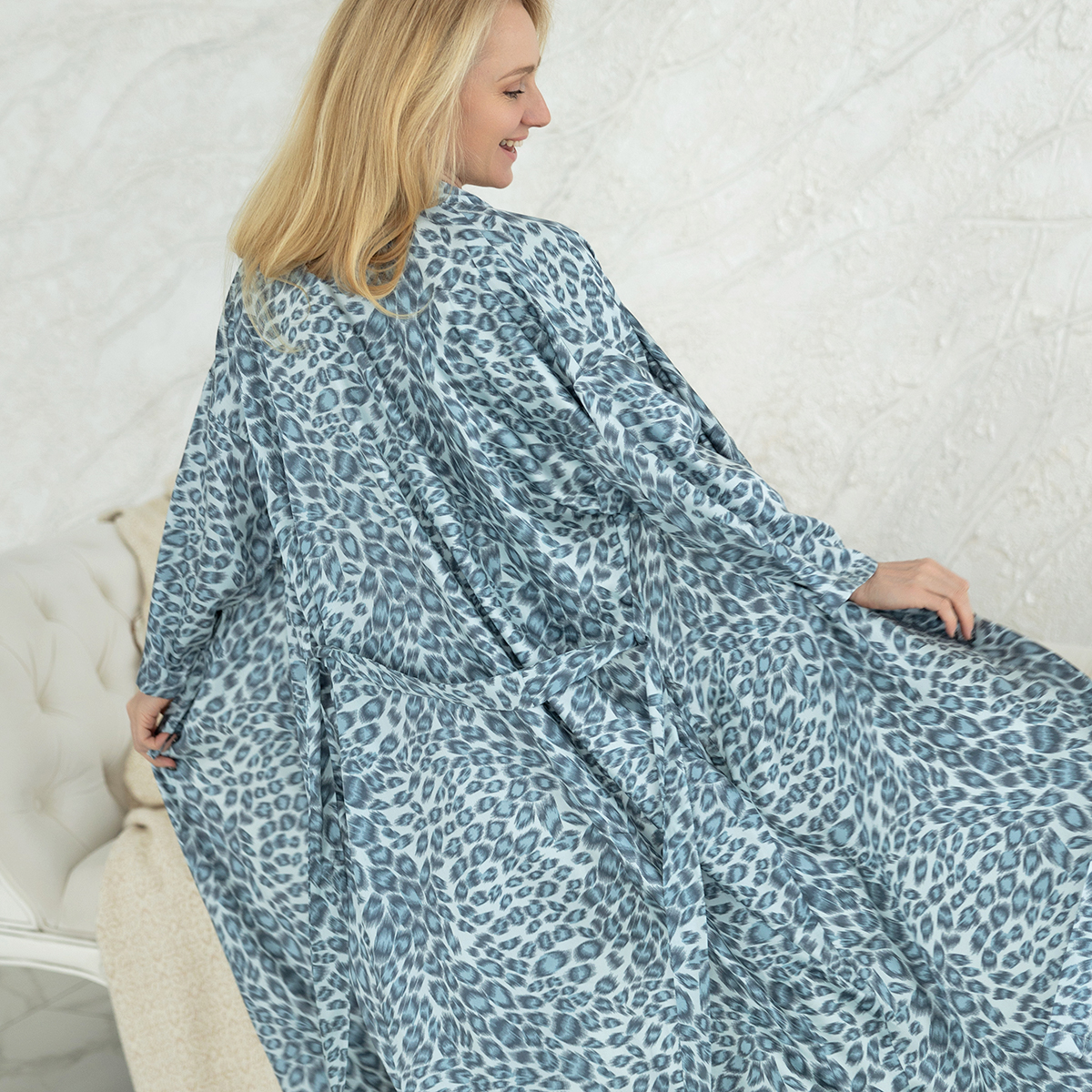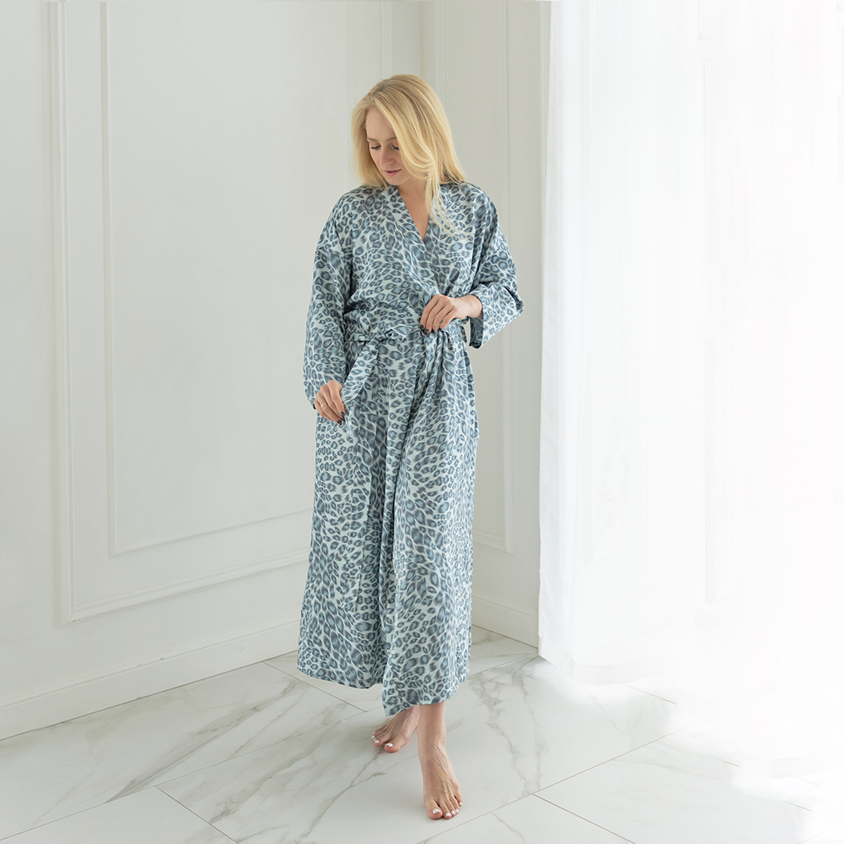 Модель: халат-кимоно, завязывается поясом на запах, имеет внутренние завязки и карманы в швах