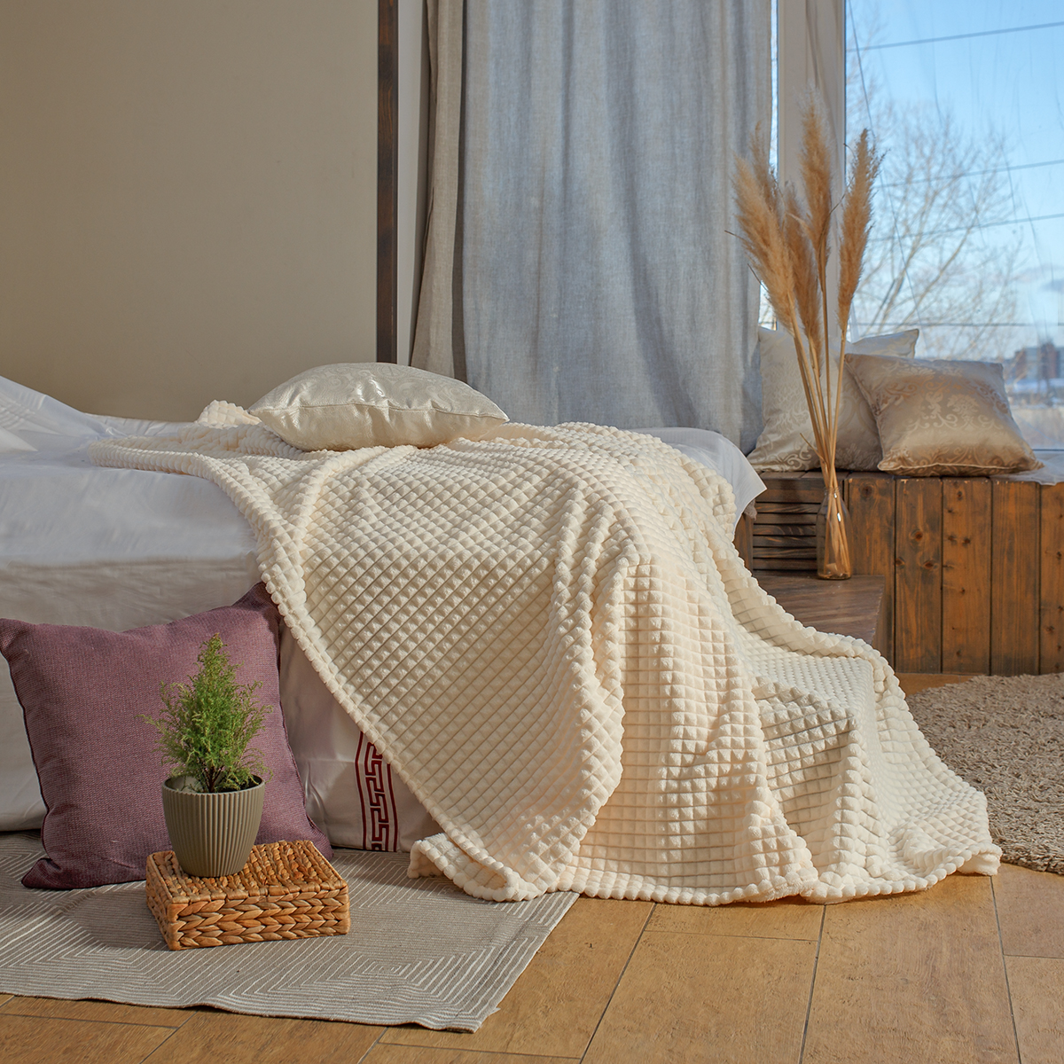 Стильный плед оттенка «Шампань» выглядит очень мягко и спокойно. Он придется по душе тем, кто не любит вызывающих красок и дерзких сочетаний. В то же время такой цвет является освежающим, он способен сбалансировать интерьер в любой цветовой гамме. Как женщины, так и мужчины оценят его по достоинству.