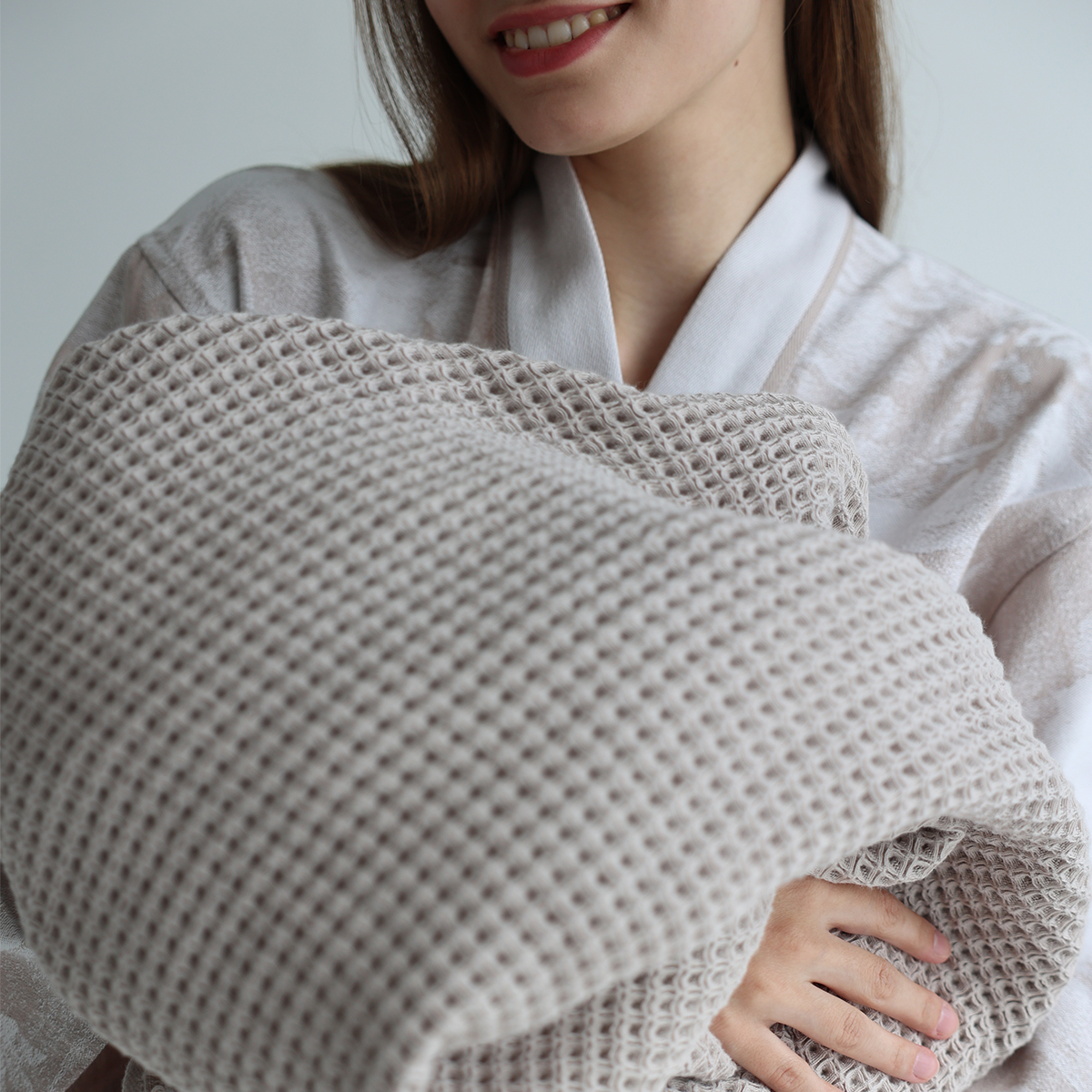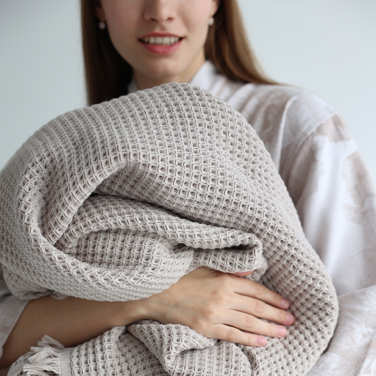 Высококачественная натуральная пряжа делает плед мягким и комфортным на ощупь. Оригинальная объемная фактура добавляет особую изысканность пледу.