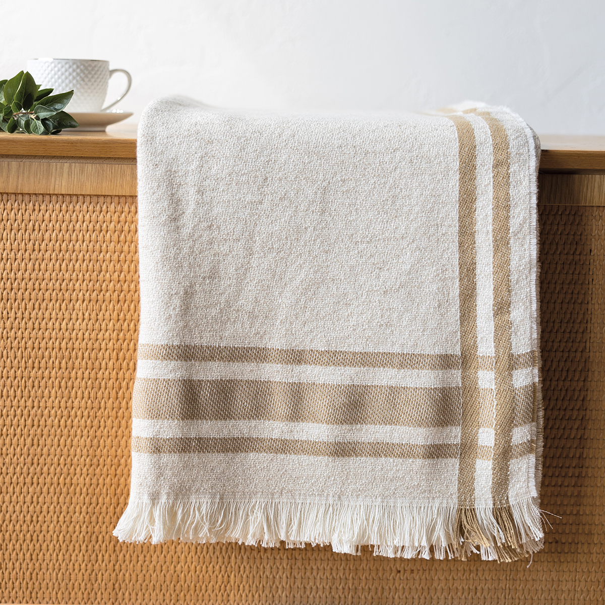 Плед декорирован лентой и фирменным вкладышем.
