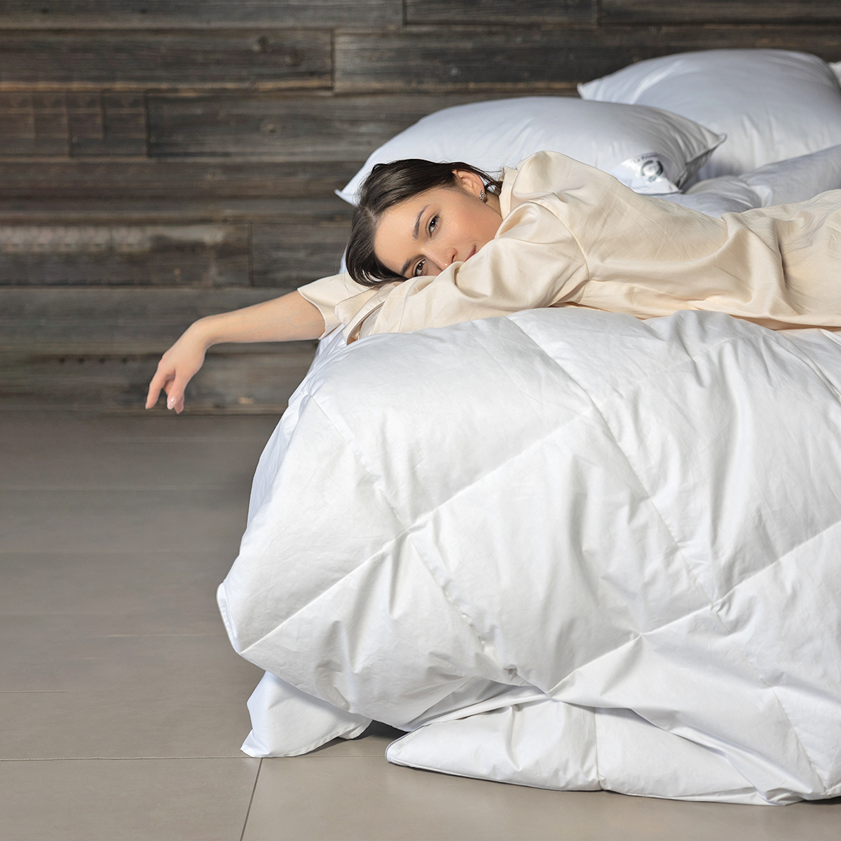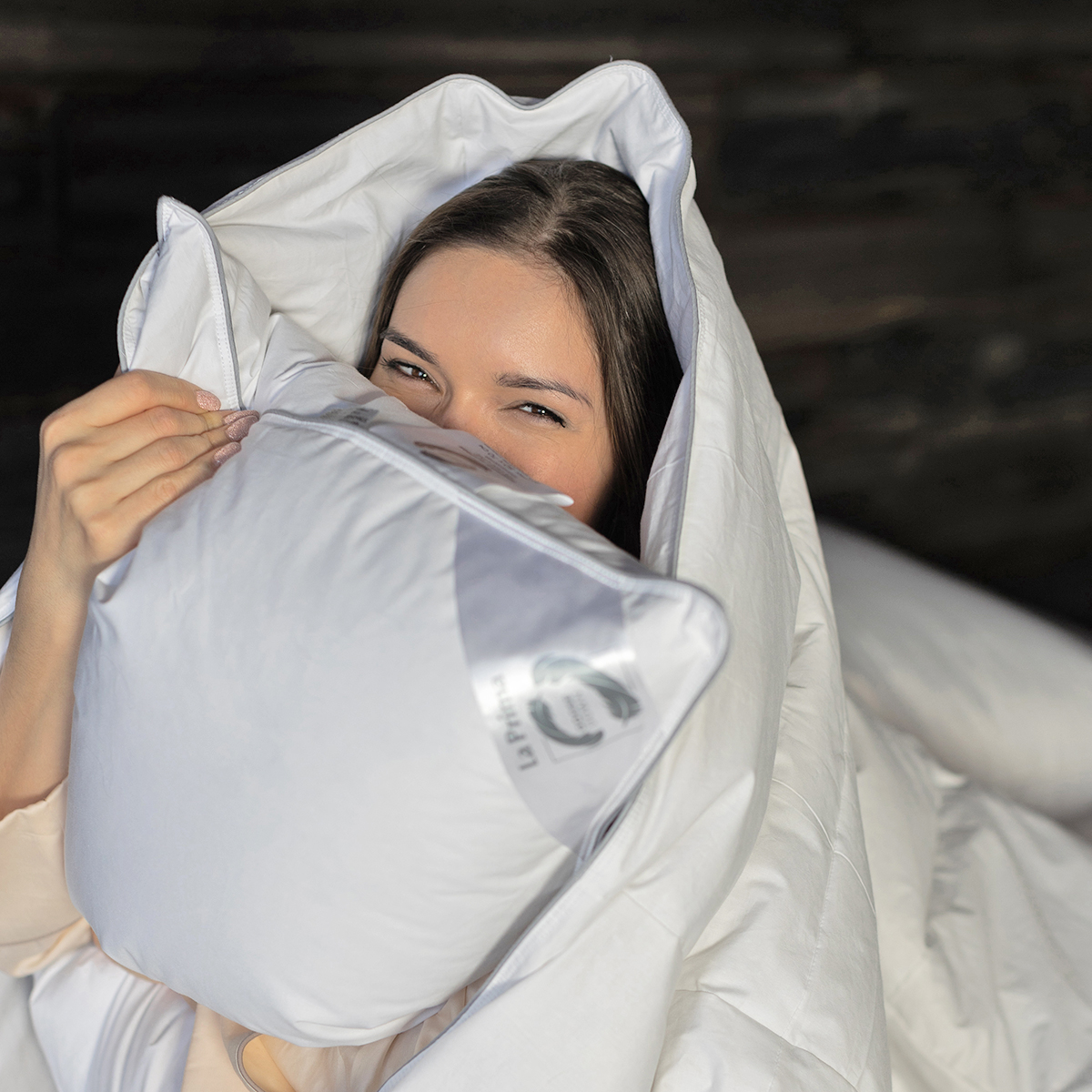 Подушка произведена из 100% серого гусиного пух - экологически чистого природного материала, внутренняя камера: мелкое гусиное перо. Пух собран и отсортирован вручную – это гарантирует высокий стандарт качества.
