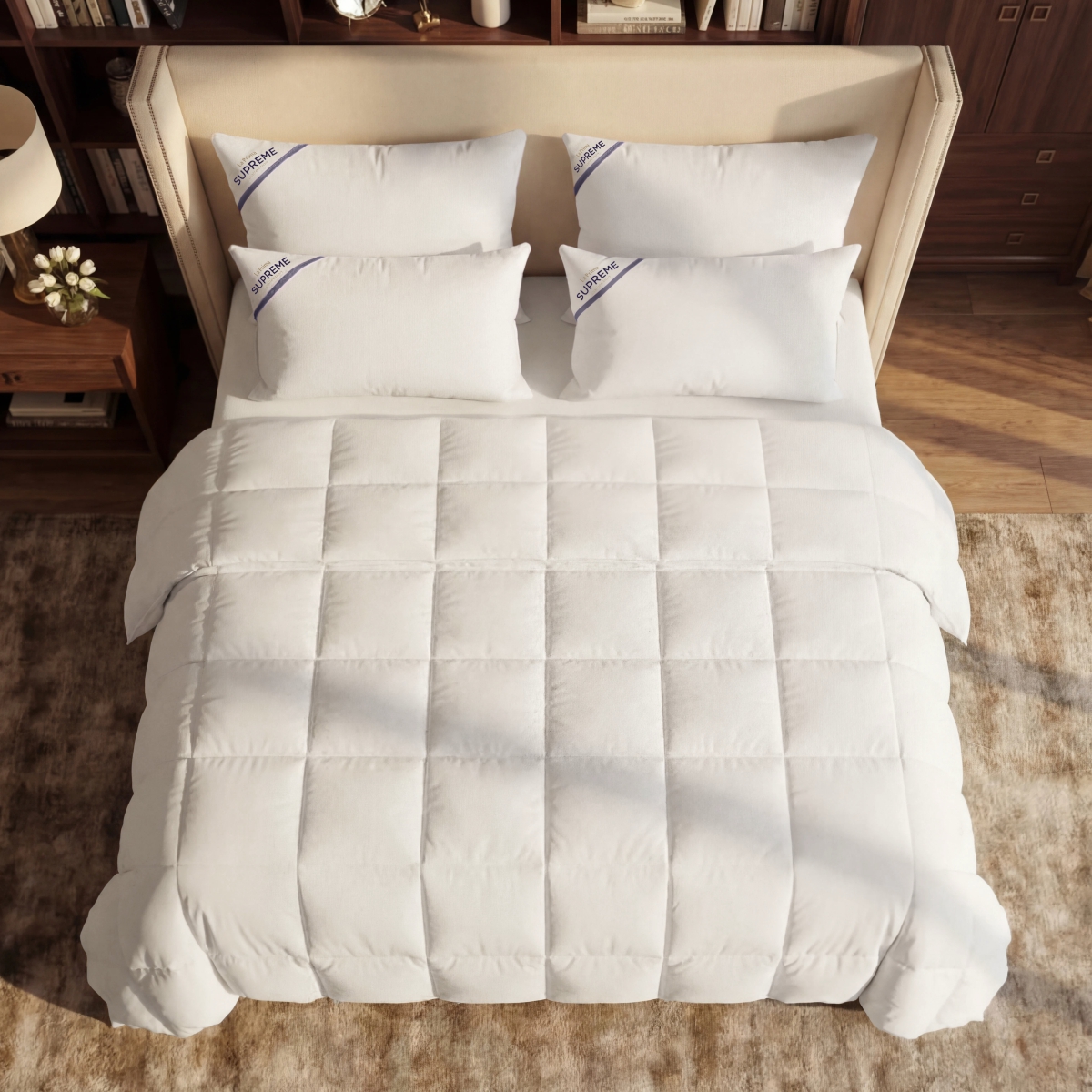 Многоступенчатая экологичная очистка пуха гарантирует гипоаллергенность и абсолютную безопасность для здоровья. Это основа для вашего спокойного и здорового сна — без раздражений и забот.