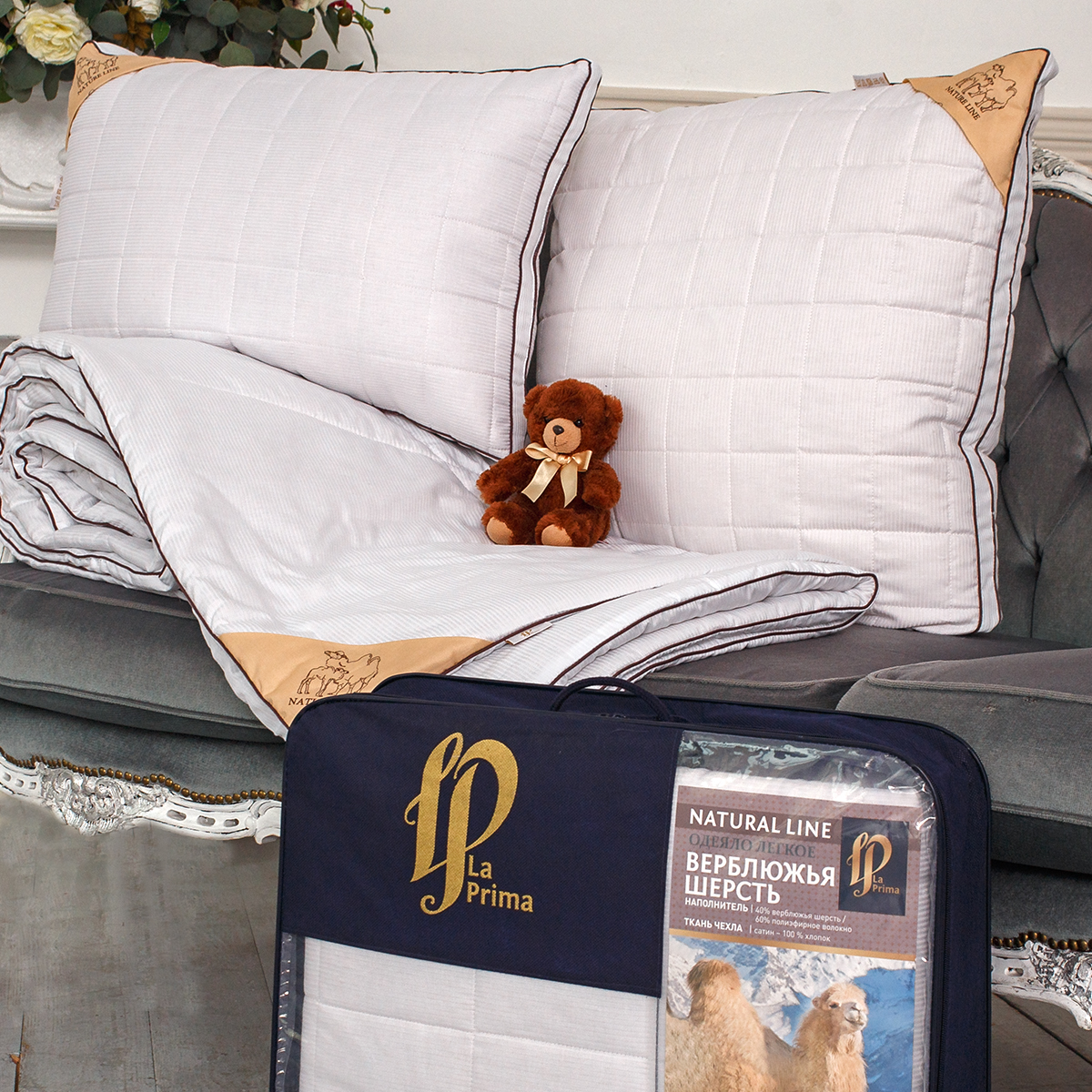 Простежка чехла: 40% верблюжья шерсть / 60% полиэфирное волокно