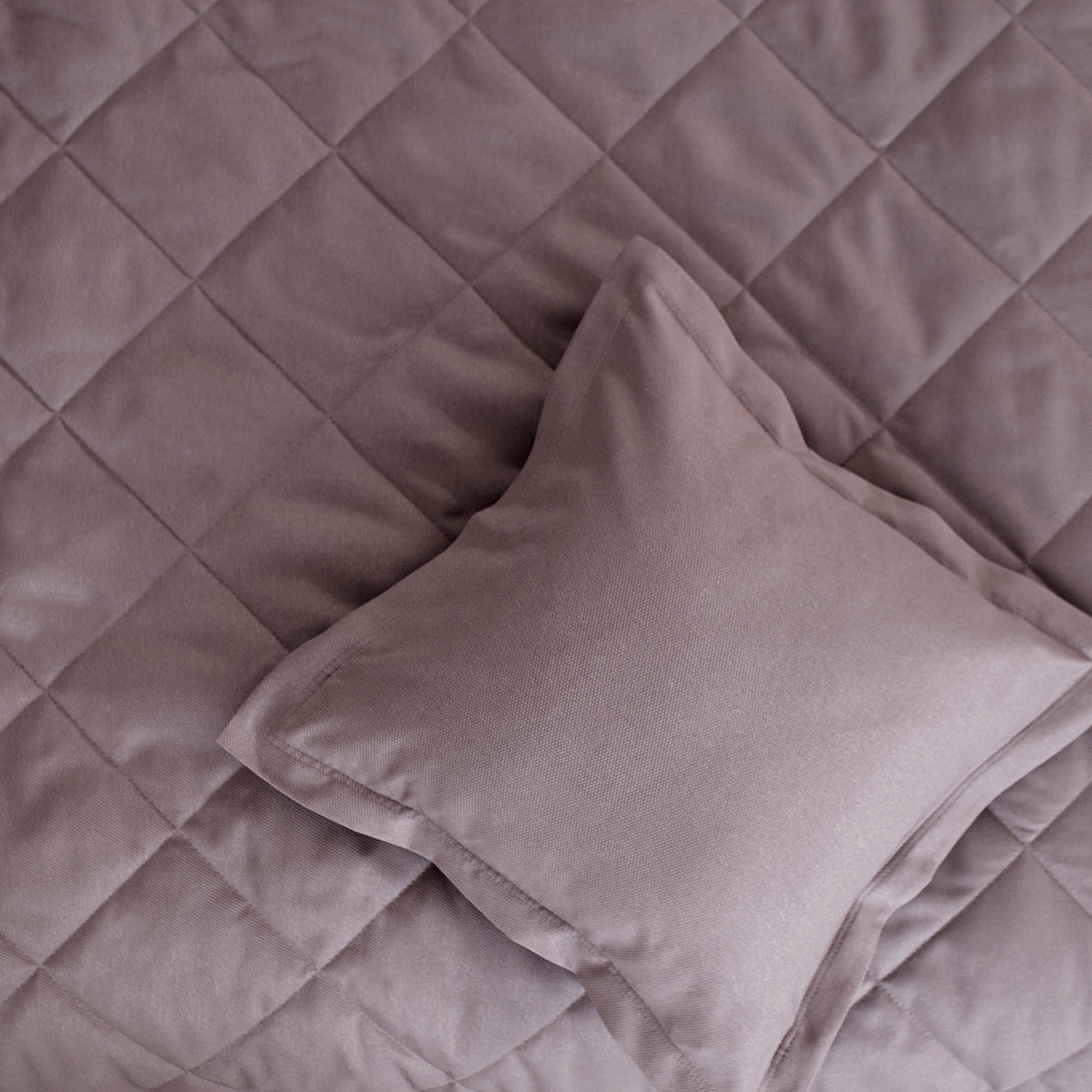 В комплект входит: стеганное покрывало на подкладе размер 240*260 см и 2 декоративные наволочки 45х45 см на молнии. Наволочки с четырех сторон декорированы ушками шириной 3 см.