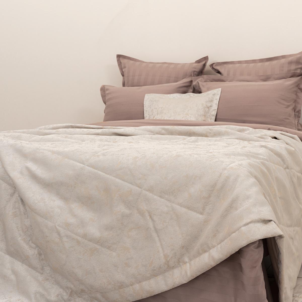 Покрывало Glori - современный стильный дизайн, с ноткой индивидуальности и завораживающей глубины. Она придаст пространству спальни особый шарм. Смотрится изысканно и элегантно, сочетает в себе изящный жаккардовый блеск, благородные цвета и фактуру.