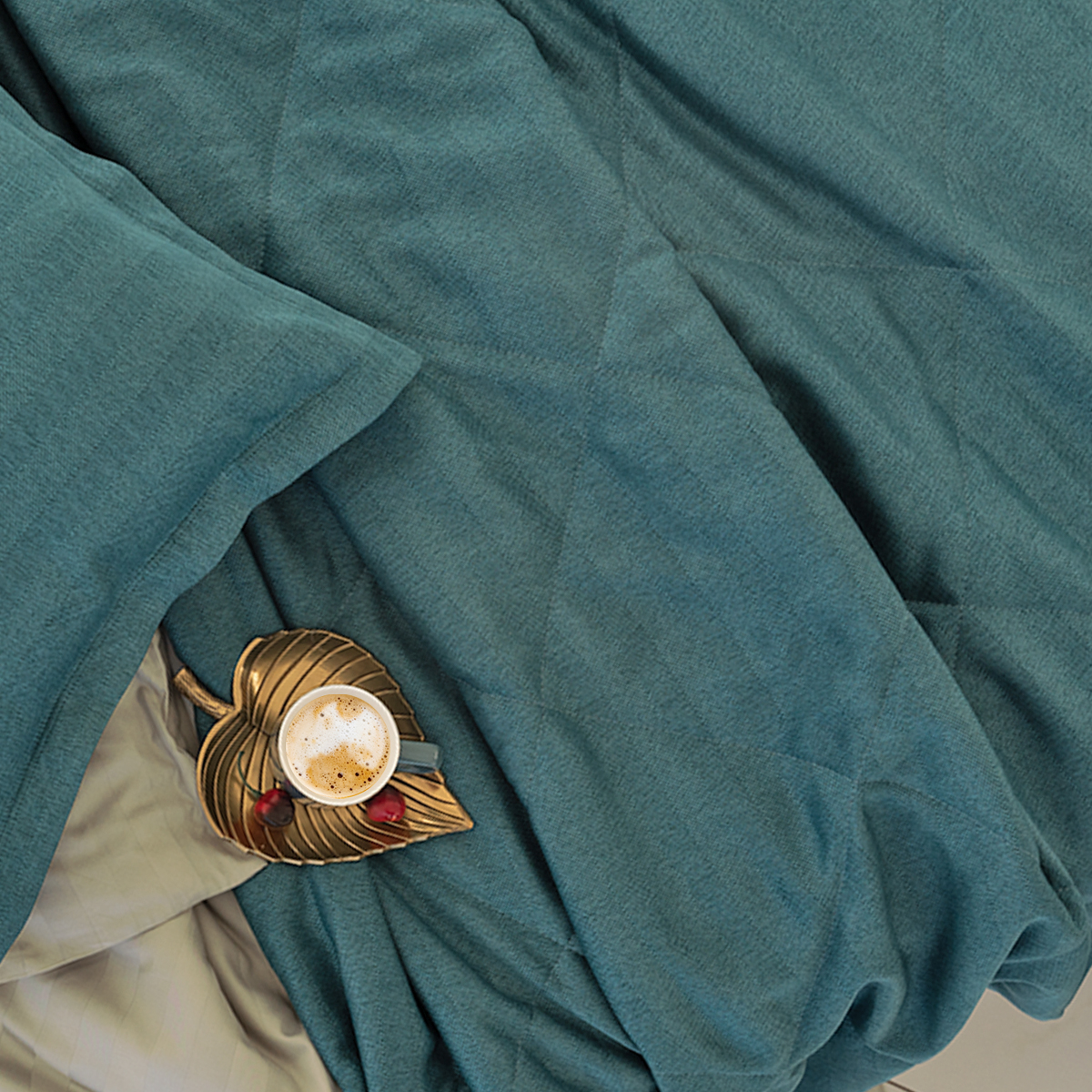 За покрывалом очень легко ухаживать, его можно стирать в домашних условиях при температуре 30С. Покрывало на кровать отлично держит форму и не дает усадку.