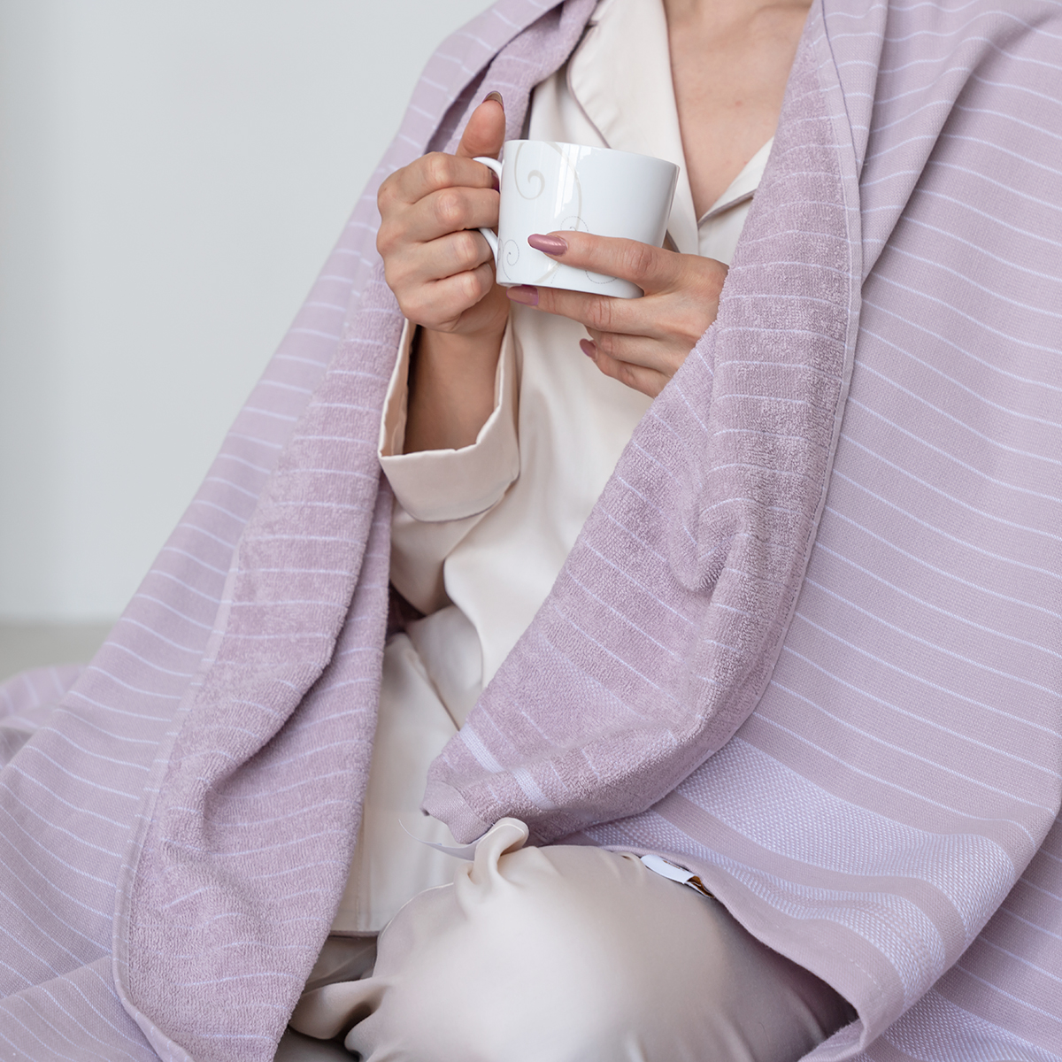 Легкое и приятное на ощупь махровое покрывало одна сторона которого - махровая, вторая сторона – гладкая.