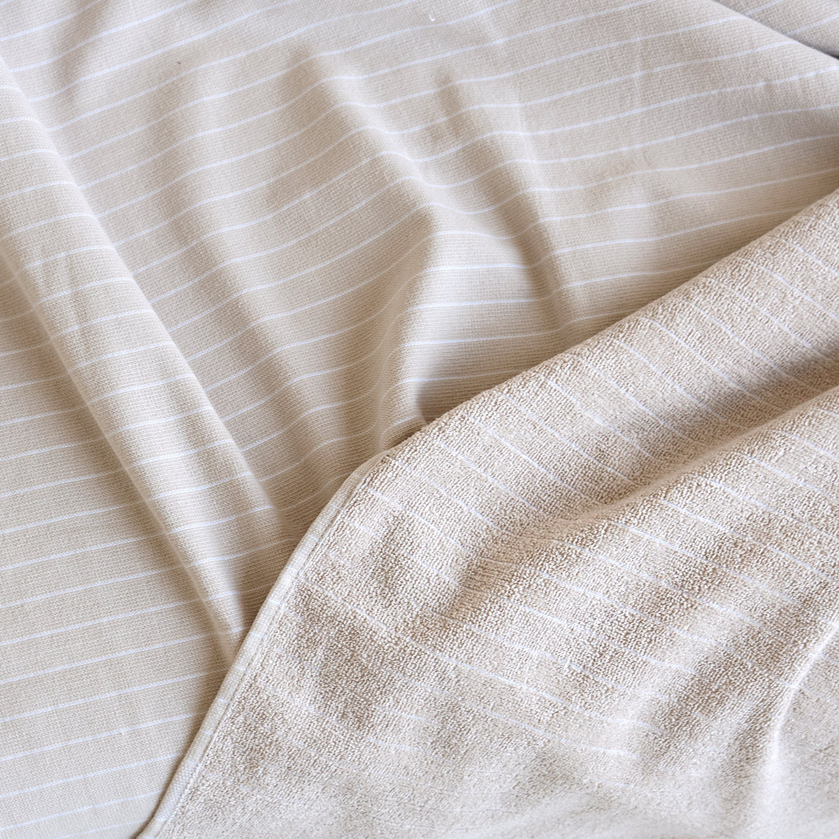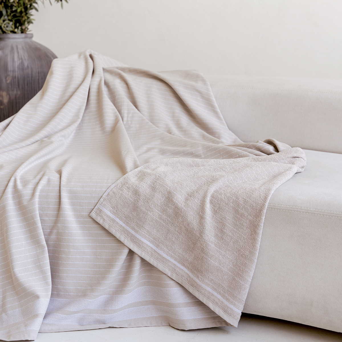 Покрывало мягкое на ощупь, хорошо впитывает влагу и быстро сохнет. Не раздражает нежную кожу.