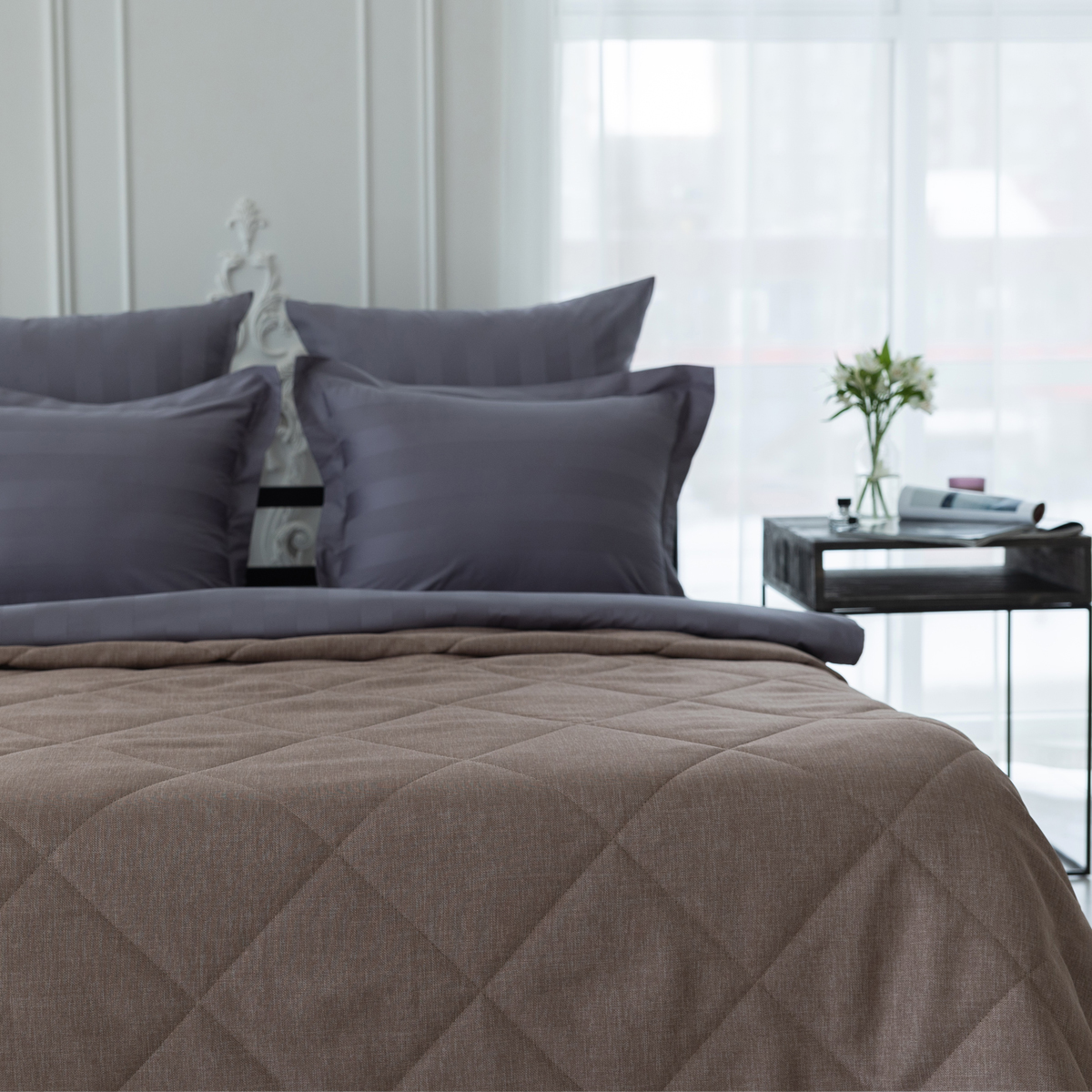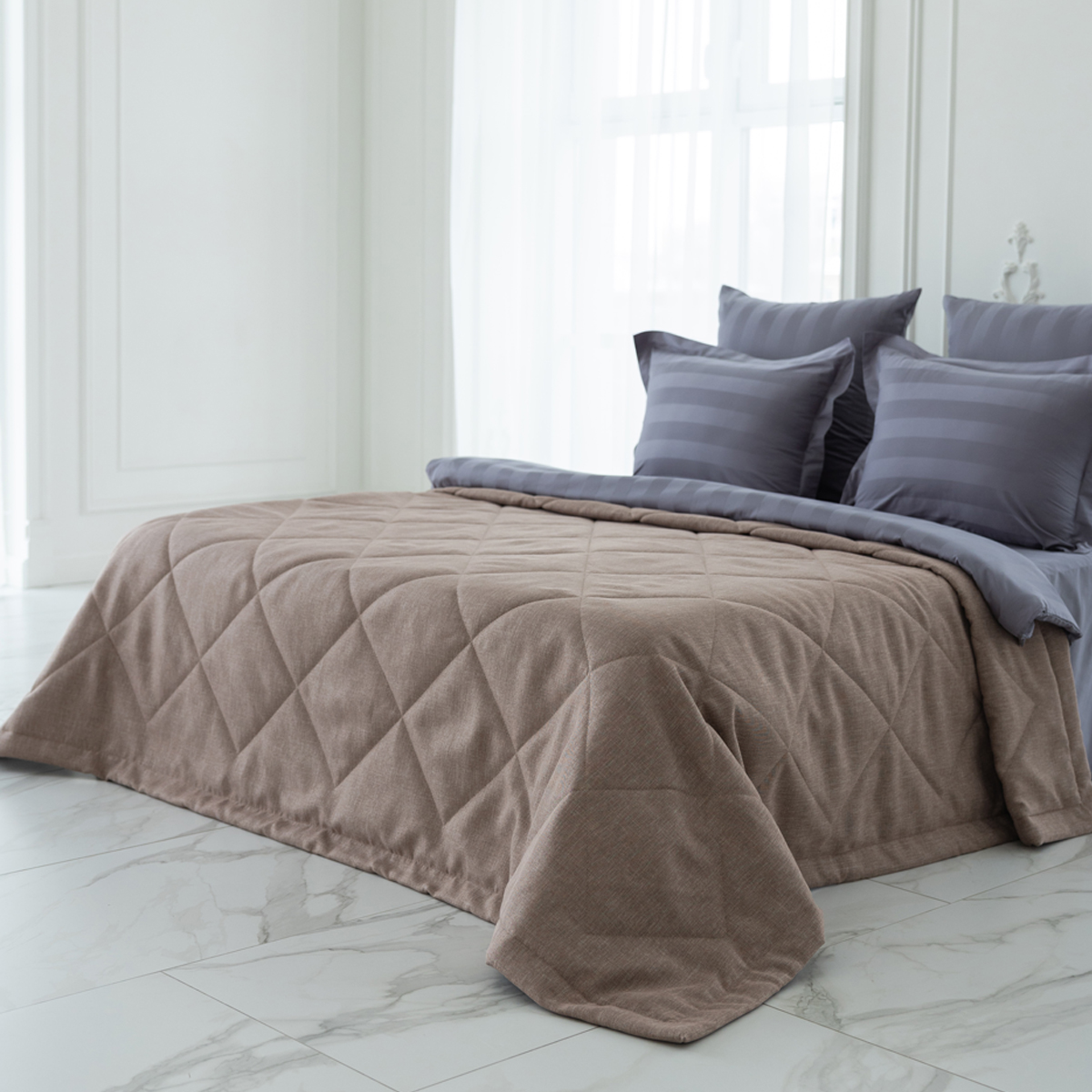 Подклад: микрофибра велюр, за счет своей фактуры он предотвращает скольжение покрывала на кровати.