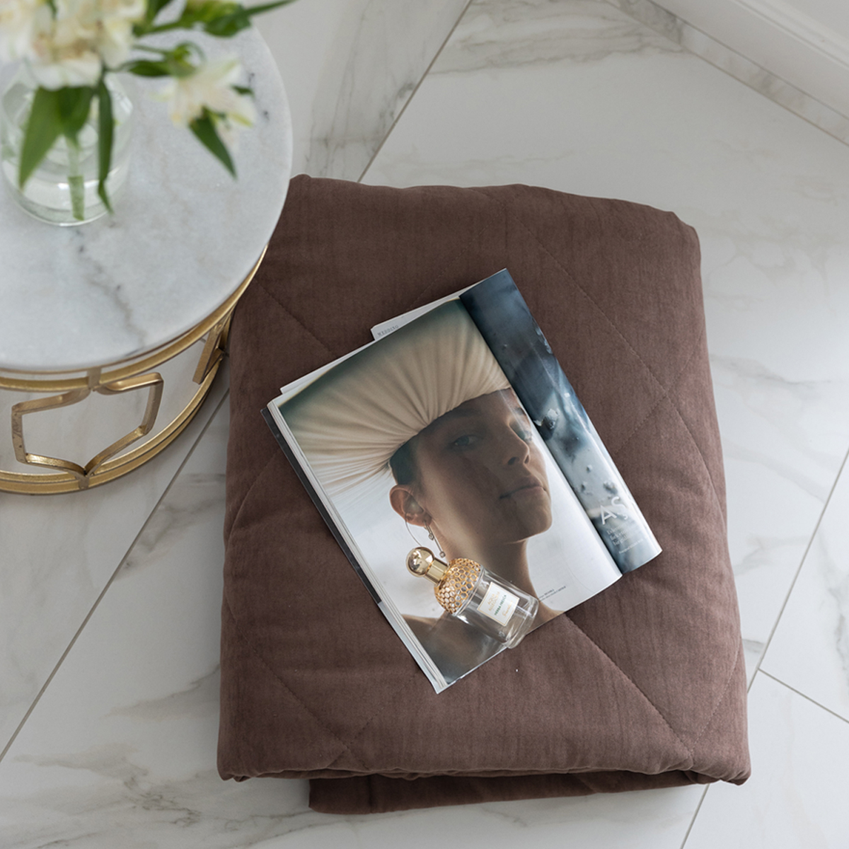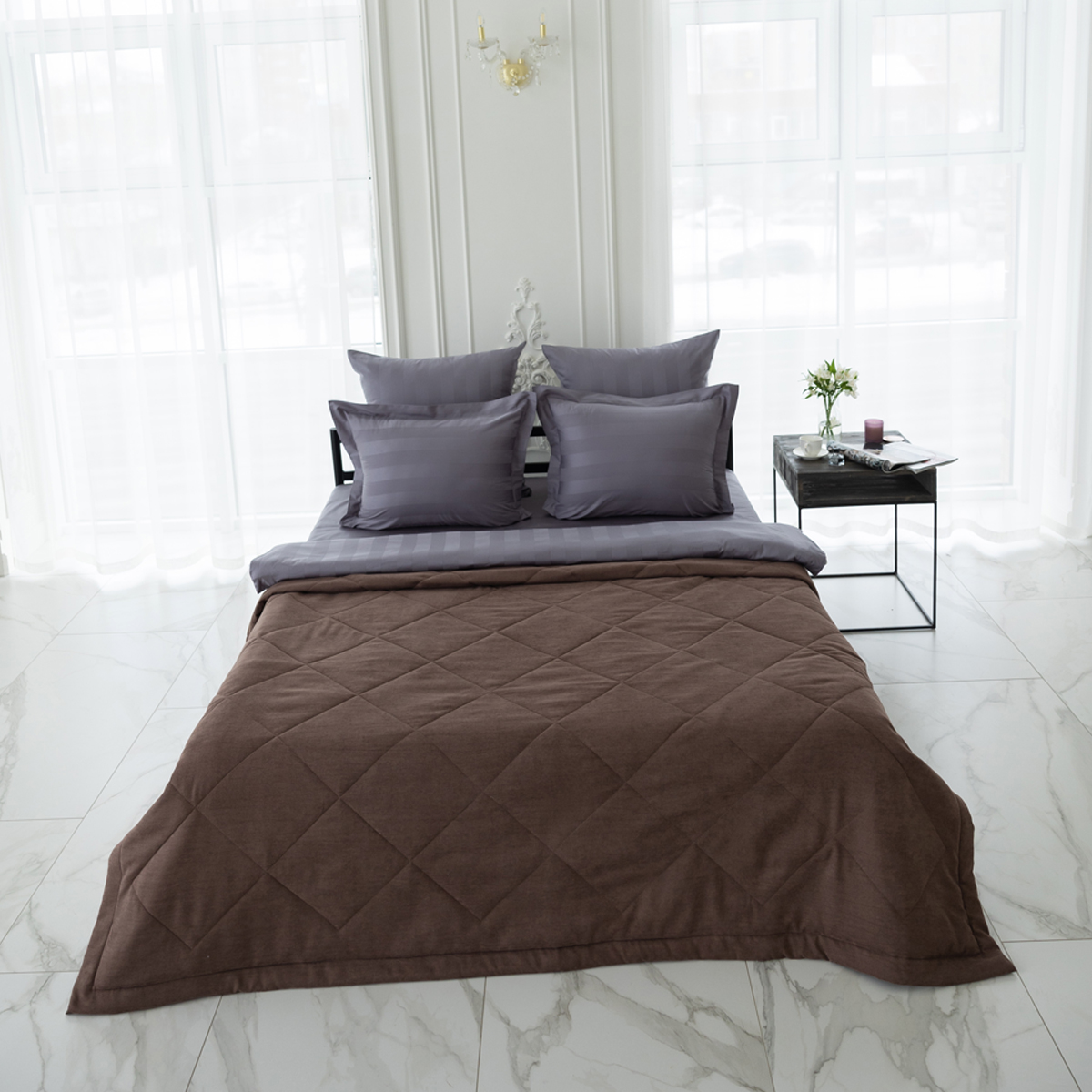 За покрывалом очень легко ухаживать, его можно стирать в домашних условиях при температуре 30С. Покрывало на кровать отлично держит форму и не дает усадку.