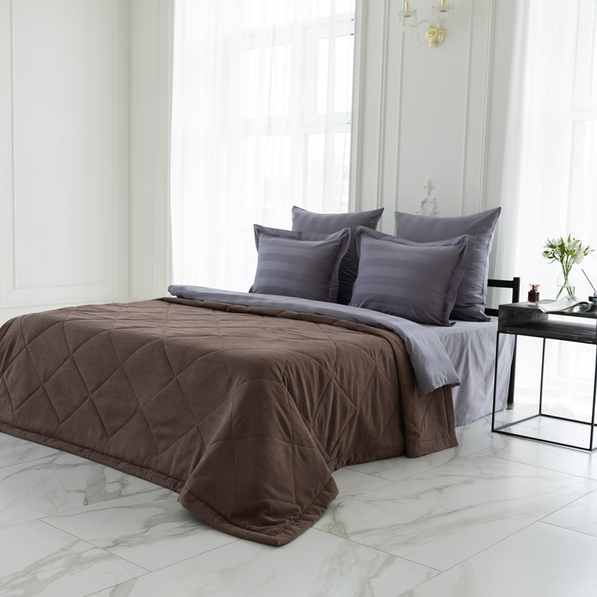 Подклад: микрофибра велюр, за счет своей фактуры он предотвращает скольжение покрывала на кровати.