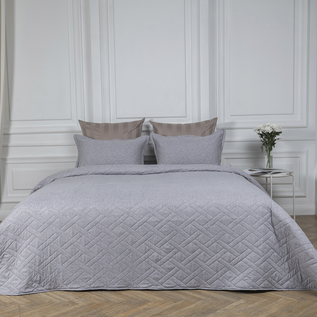 В комплект входит: покрывало на кровать 220x240 см и декоративные стеганые наволочки 50x70 см с ушками – 2шт. Состав: 60% вискозы и 40% хлопка, обеспечивает нежное прикосновение и комфортный сон. Покрывало имеет тактильно приятную Soft Touch фактуру и матовую поверхность для максимального комфорта. Не скользит, идеально принимает форму кровати.
