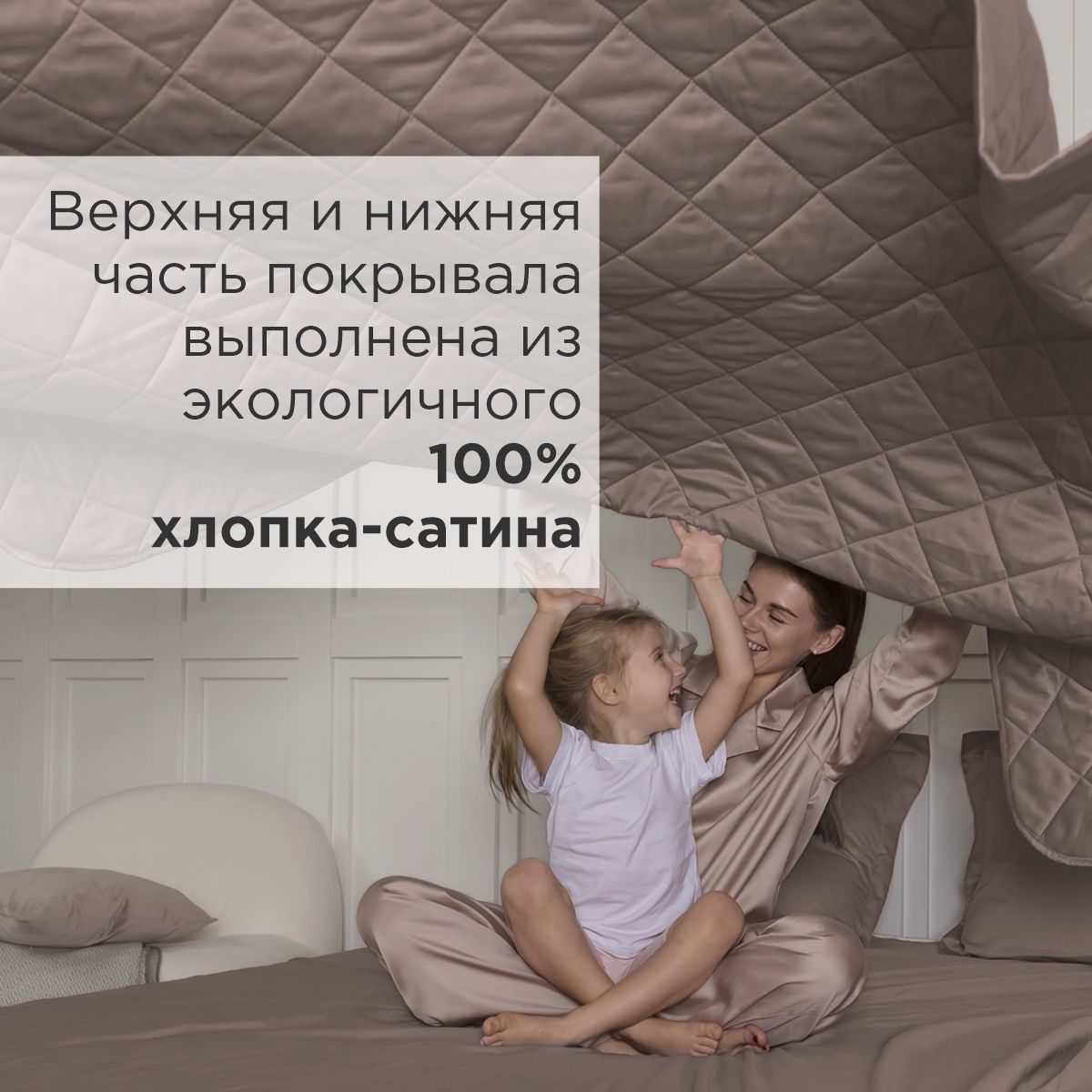 - Верхняя и нижняя часть покрывала выполнены из высококачественного сатина – безопасного, натурального и комфортного материала.