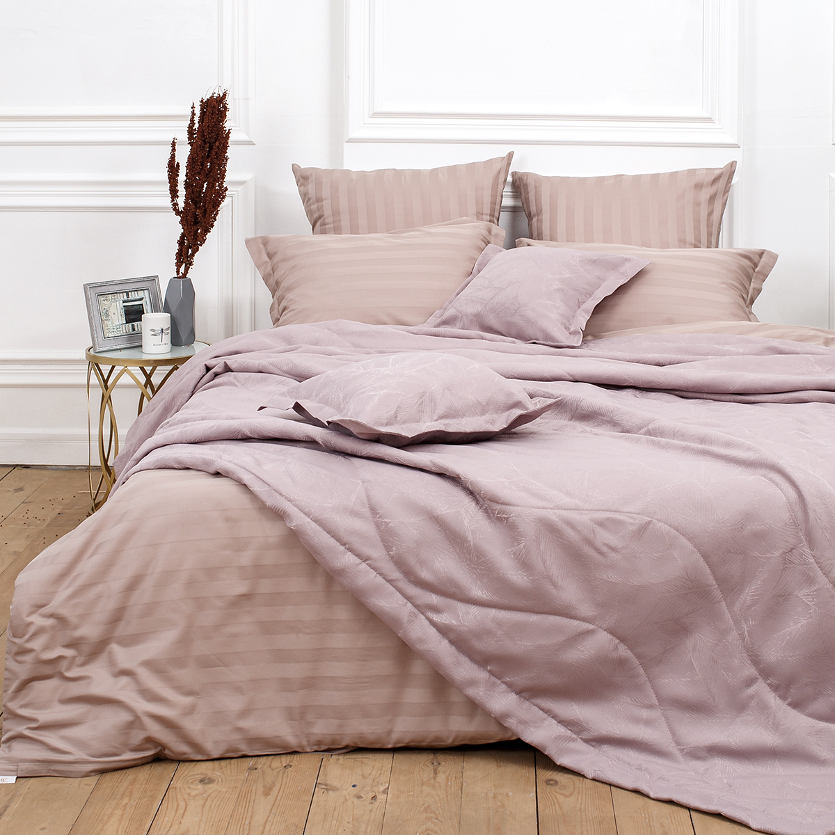 За покрывалом очень легко ухаживать, его можно стирать в домашних условиях при температуре 30С. Оно отлично держит форму, не дает усадку и не мнется.