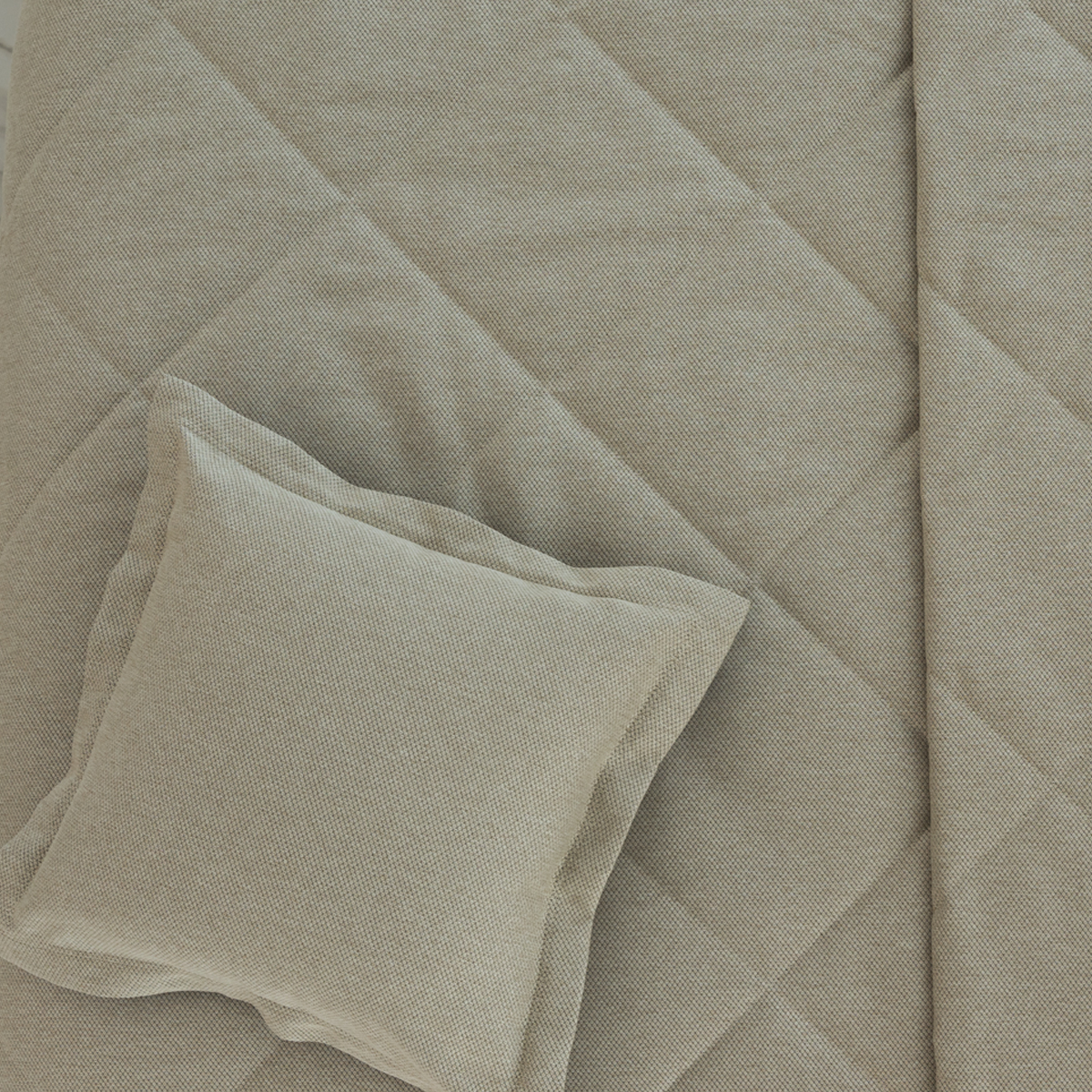 Состав: ткань портьерная 100% пэ - димаут, наполнитель - полиэфирное волокно. Стежка в виде ромбов. Подклад покрывала – микрофибра велюр, за счет своей фактуры он предотвращает скольжение покрывала на кровати.