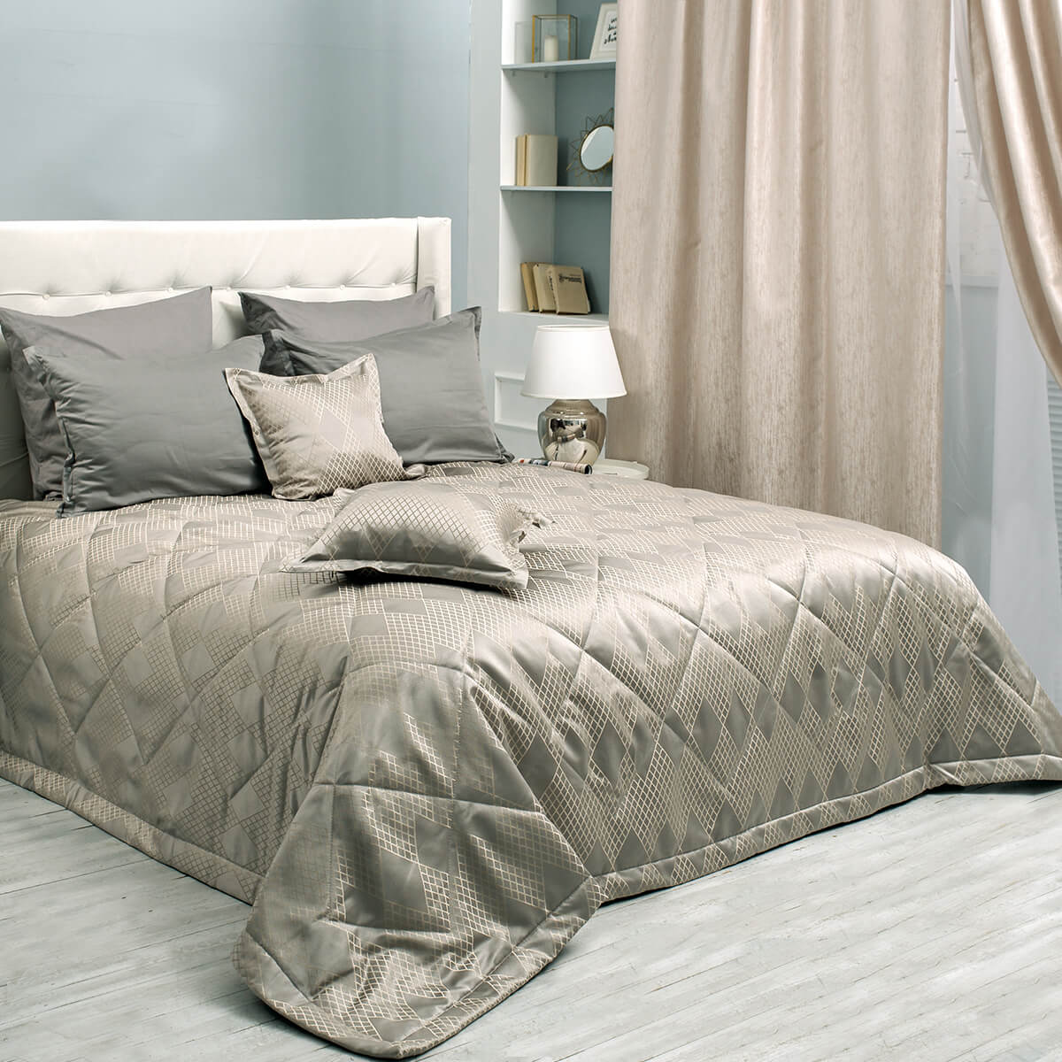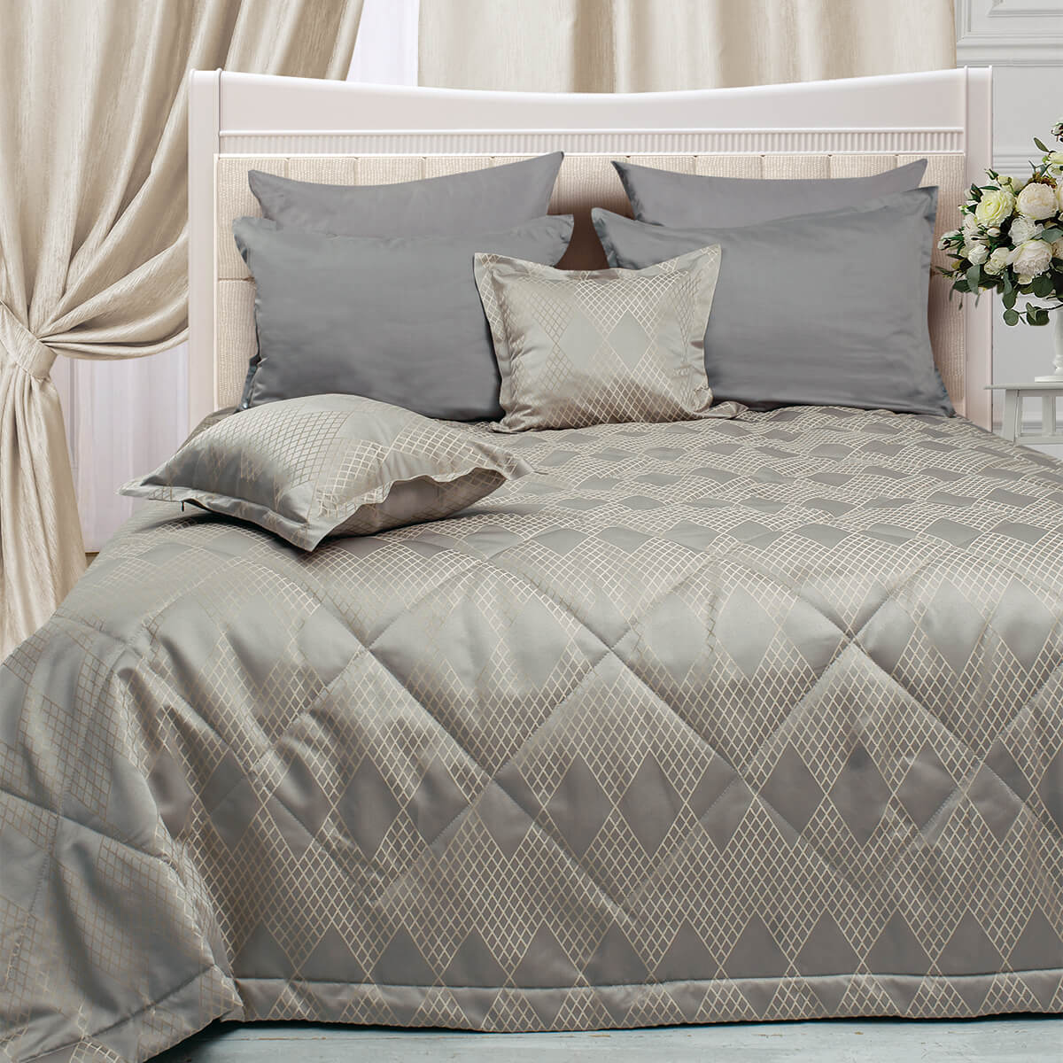 К покрывалу можно выбрать комплект штор из коллекции La Prima для создания неповторимой изюминки в вашем доме.