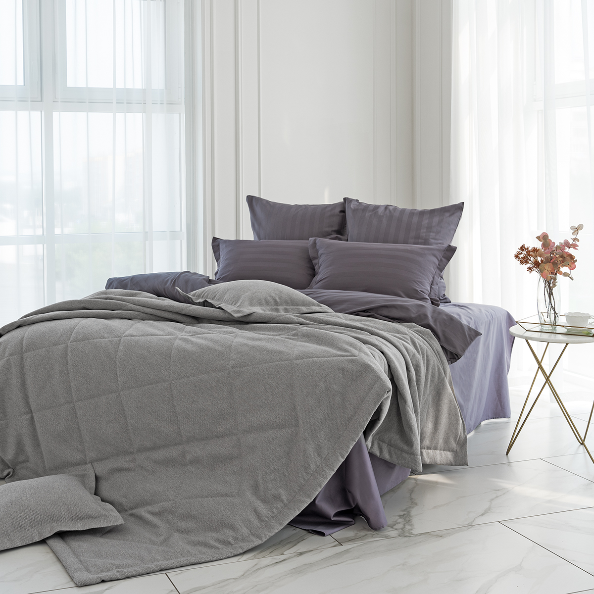 За покрывалом очень легко ухаживать, его можно стирать в домашних условиях при температуре 30С. Покрывало на кровать 240х260 см отлично держит форму, не дает усадку и не