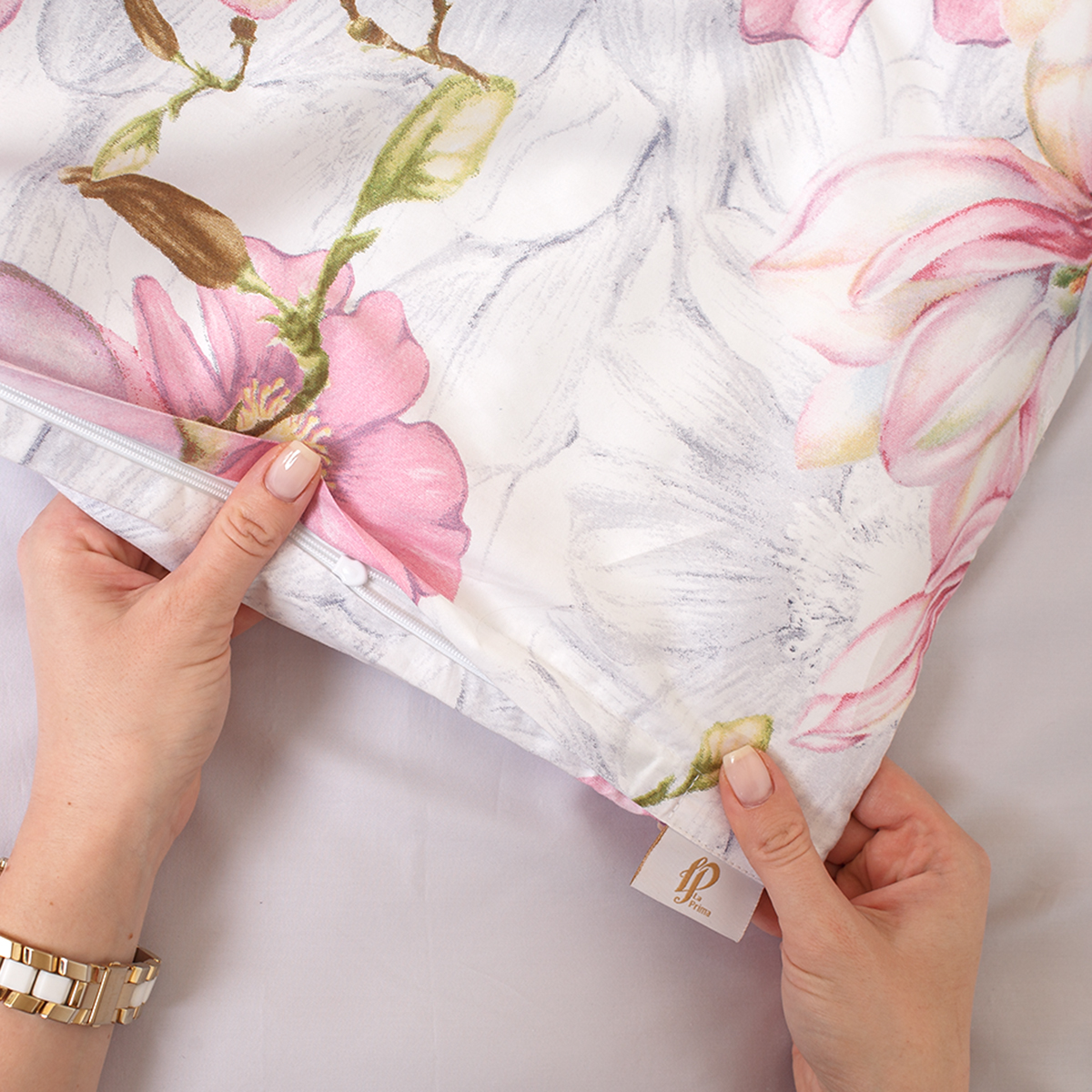 - «Невидимая» молния во всю ширину по нижнему краю пододеяльника. Для быстрой и удобной смены постельного белья в верхней части пододеяльника расположены клапаны для рук. Сменить пододеяльник можно за 30 секунд.