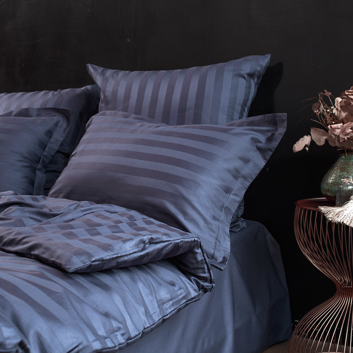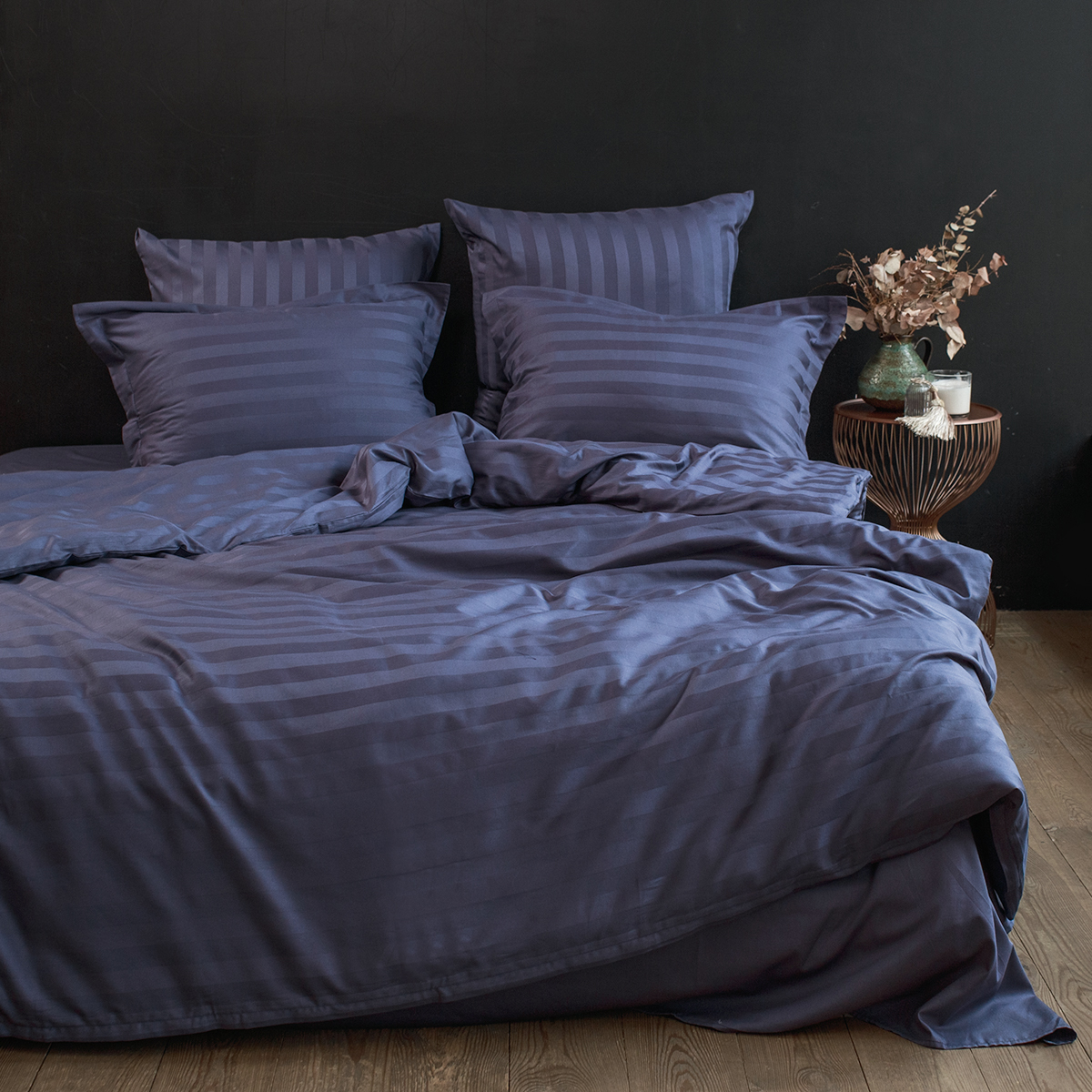 Однотонный стильный комплект постельного белья произведен из ткани страйп-сатин – 100% хлопок с жаккардовым рисунком в виде полос 3х3. Благодаря специальному плетению - это гладкая, нежная и приятная на ощупь ткань.   Пропускает воздух, поддерживает комфортную температуру тела, когда вы спите.