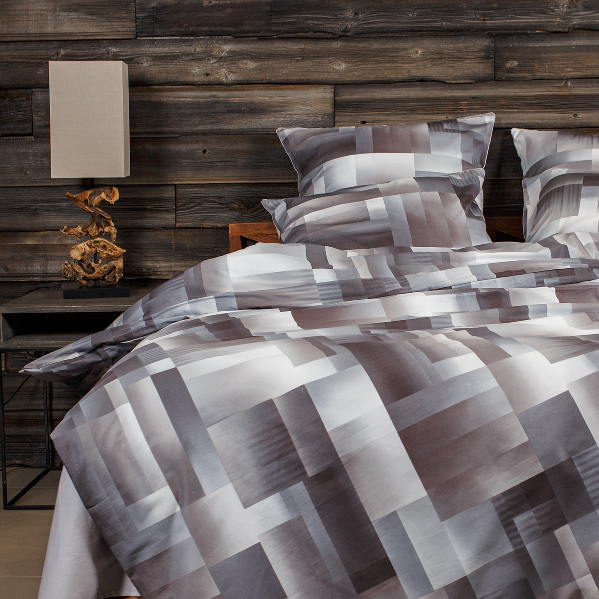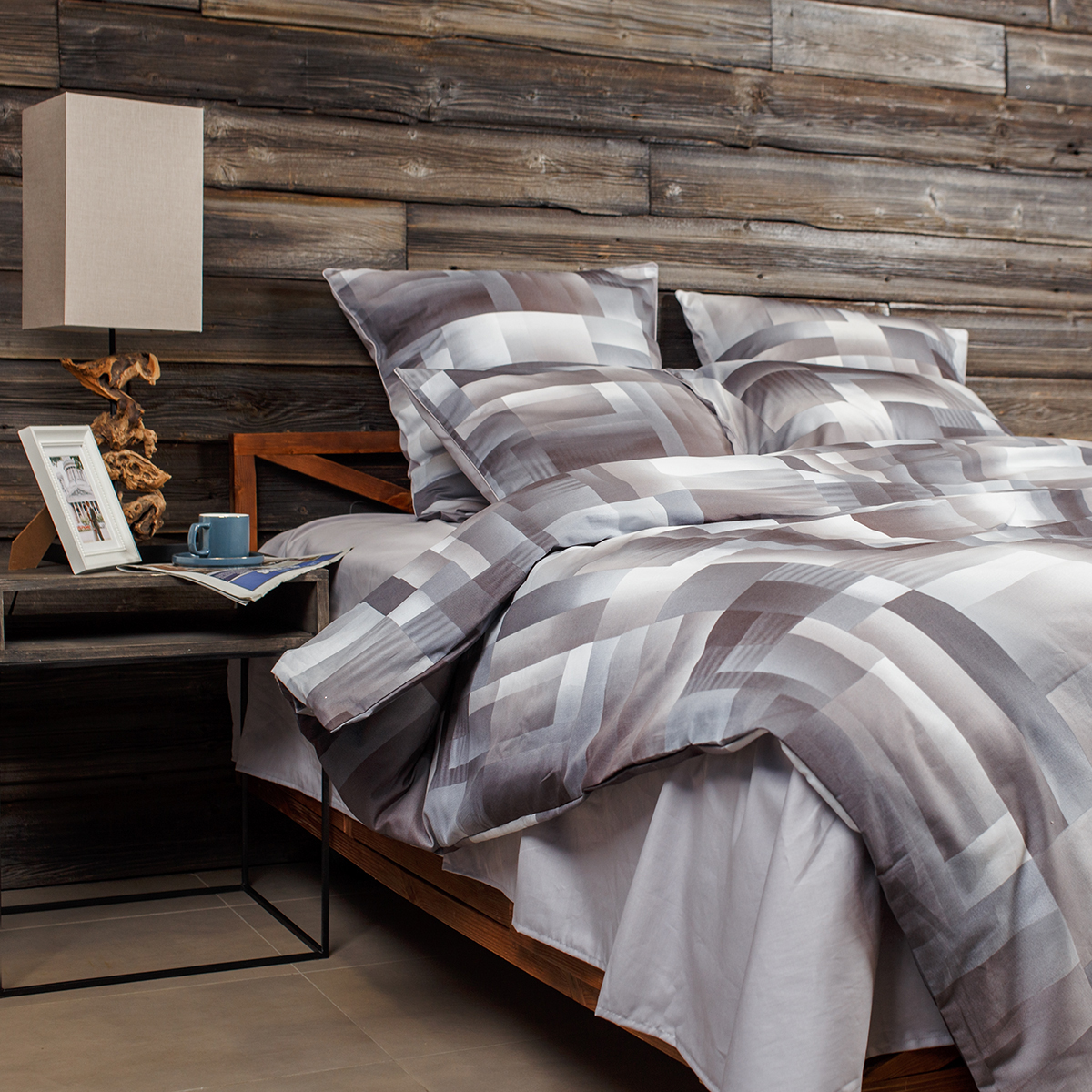 - Наволочки двухсторонние: лицевая сторона– геометрический принт, оборотная – однотонная. Декоративный кант по трем сторонам наволочки. Широкий запах на наволочках - легко менять подушки.