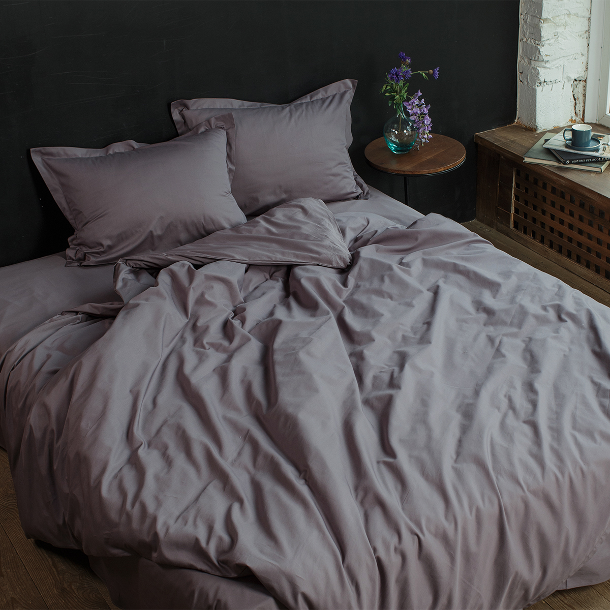 ПОСТЕЛЬНОЕ БЕЛЬЕ САТИН ОДНОТОННЫЙ ГРАФИТОВЫЙ