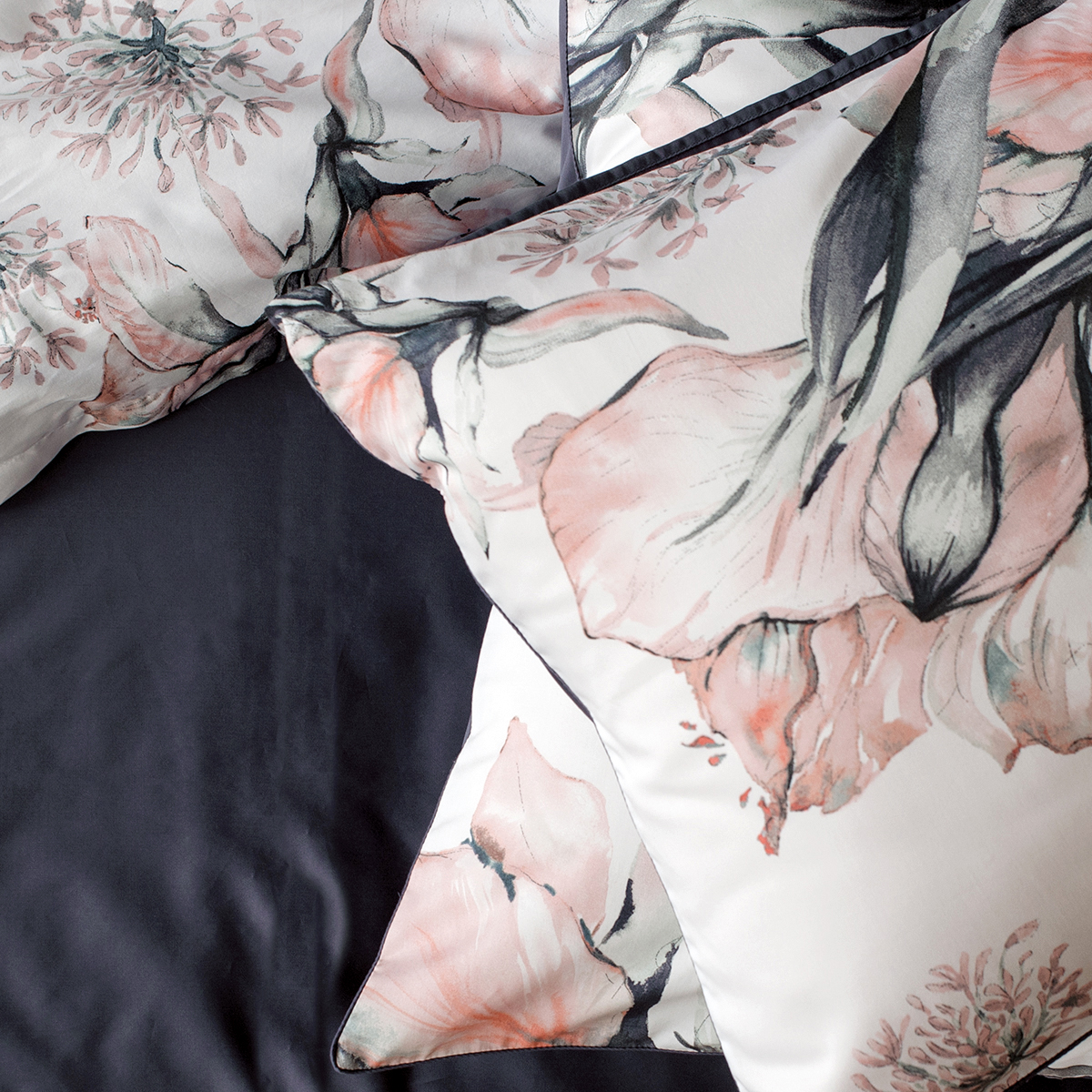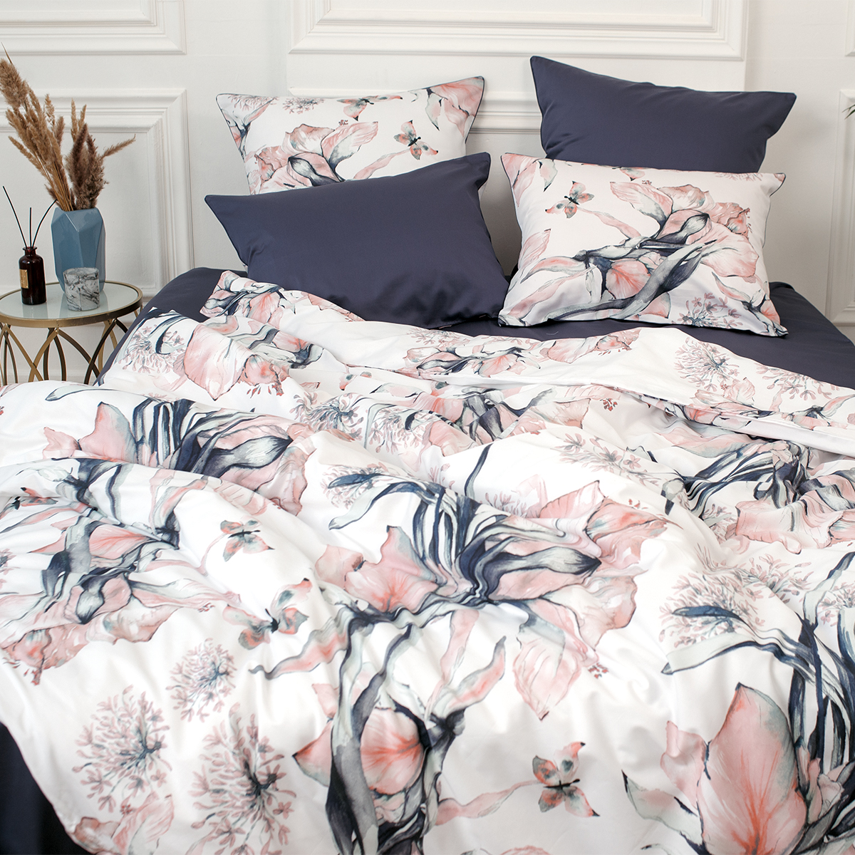 - Наволочки двухсторонние: лицевая сторона – цветочный принт, оборотная – однотонная. Декоративный кант по трем сторонам наволочки. Широкий запах на наволочках - легко менять подушки.