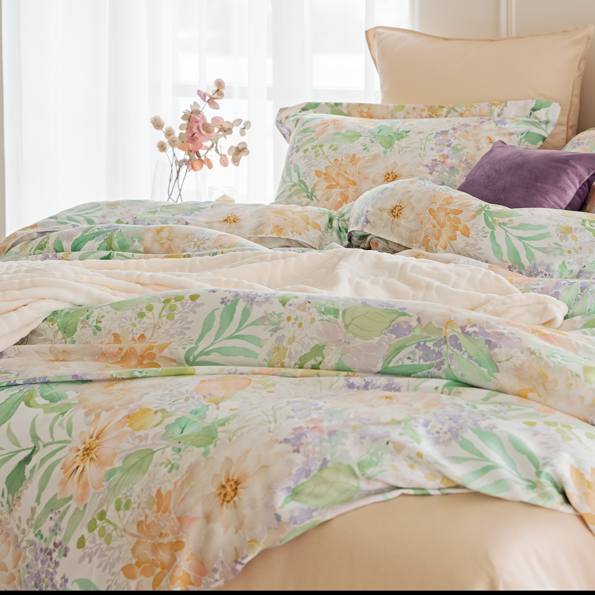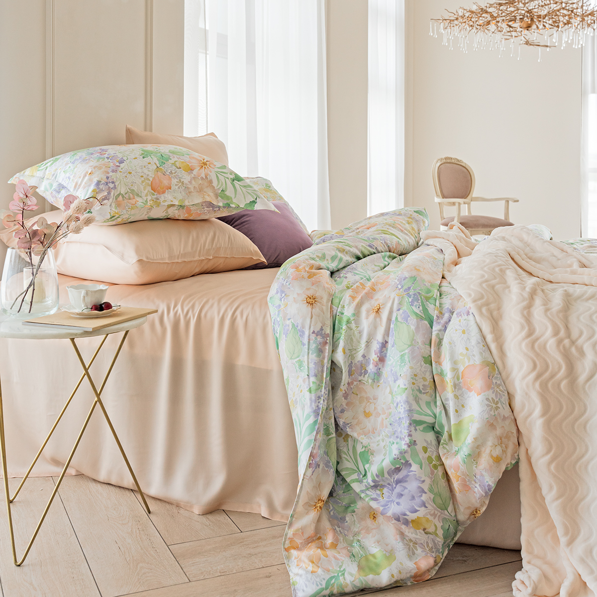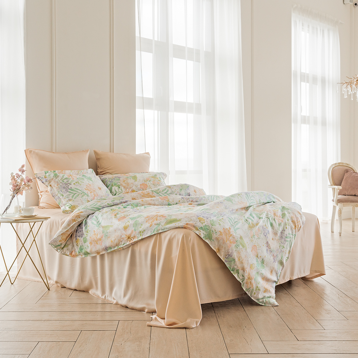Tencel относится к разряду биологически чистого и натурального волокна. Очень приятен на ощупь и дарит ощущение невероятного комфорта. Поверхность ткани обладает легким мягким блеском, присущим натуральному шелку. Подходит для самой чувствительной кожи.