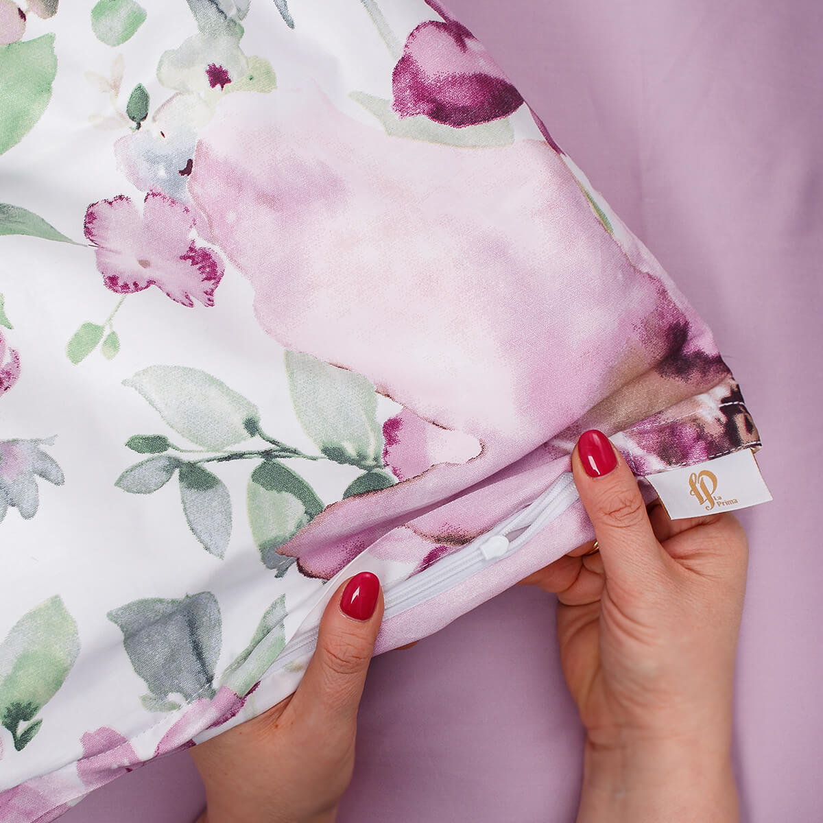 УДОБНАЯ МОДЕЛЬ: в верхней части пододеяльника расположены клапаны для рук. Вы продеваете руки в клапаны, снизу захватываете одеяло, встряхиваете и... вуаля: одеяло в пододеяльнике. Молния в цвет комплекта на всю ширину пододеяльника. Широкий запах на наволочках - легко менять подушки.