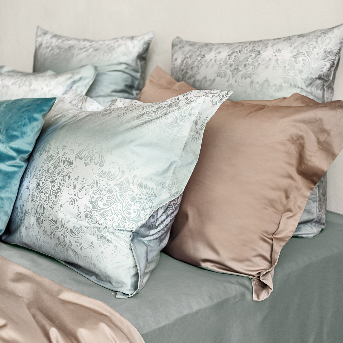В ткани мако-сатин, из которой произведена коллекция, используется более тонкая 60-я нить. Плотность ткани 300 ТС. За счет специальной скрутки нити, ткань получается очень мягкая и приятная на ощупь.