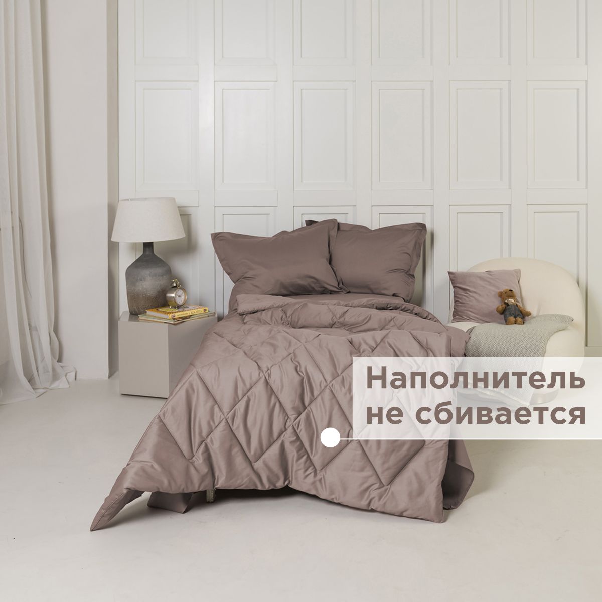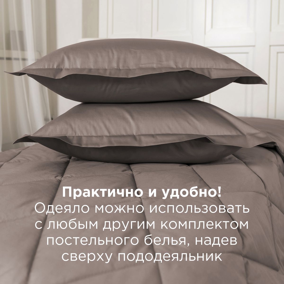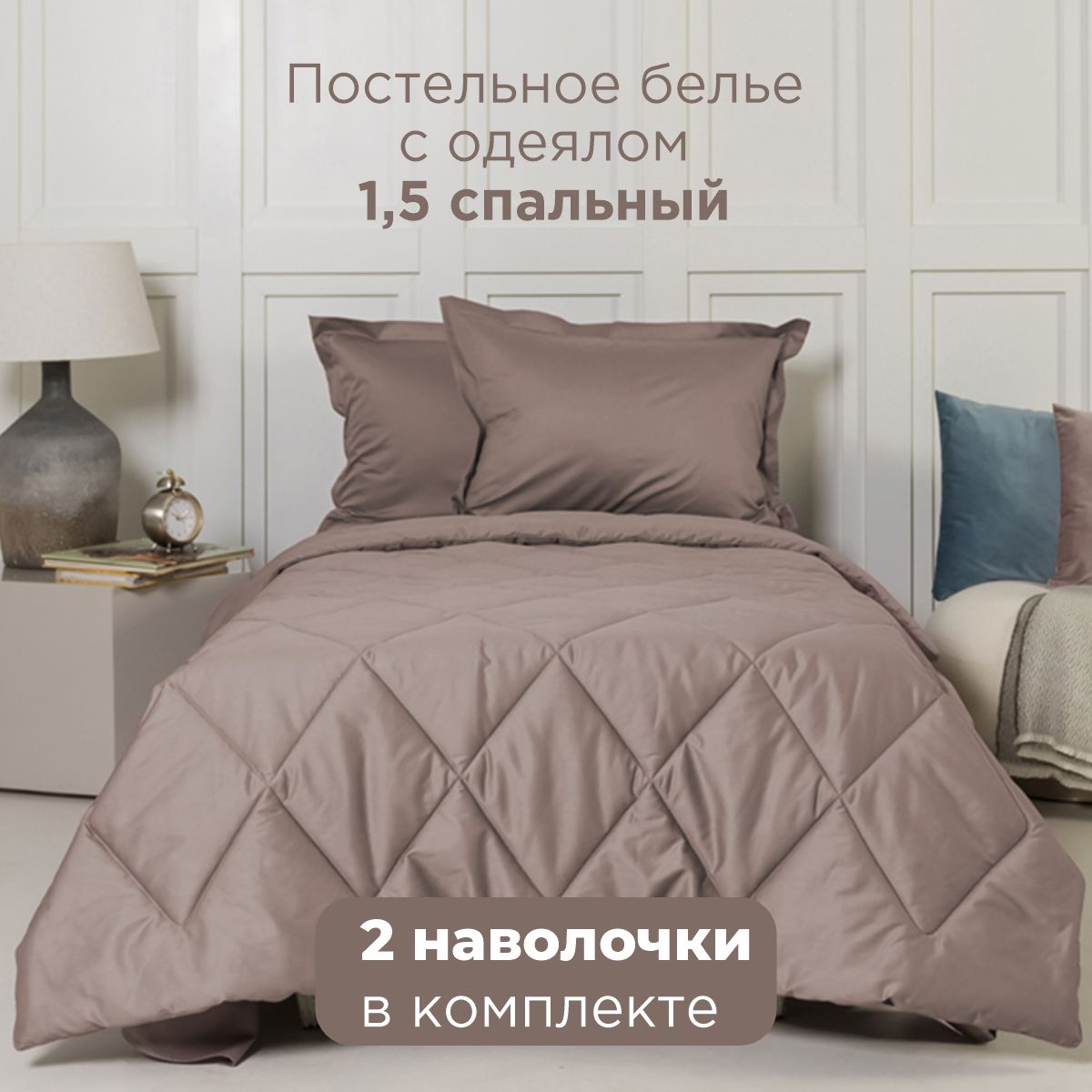 ПОСТЕЛЬНОЕ БЕЛЬЁ САТИН С ОДЕЯЛОМ 2 НАВОЛОЧКИ КОФЕЙНЫЙ