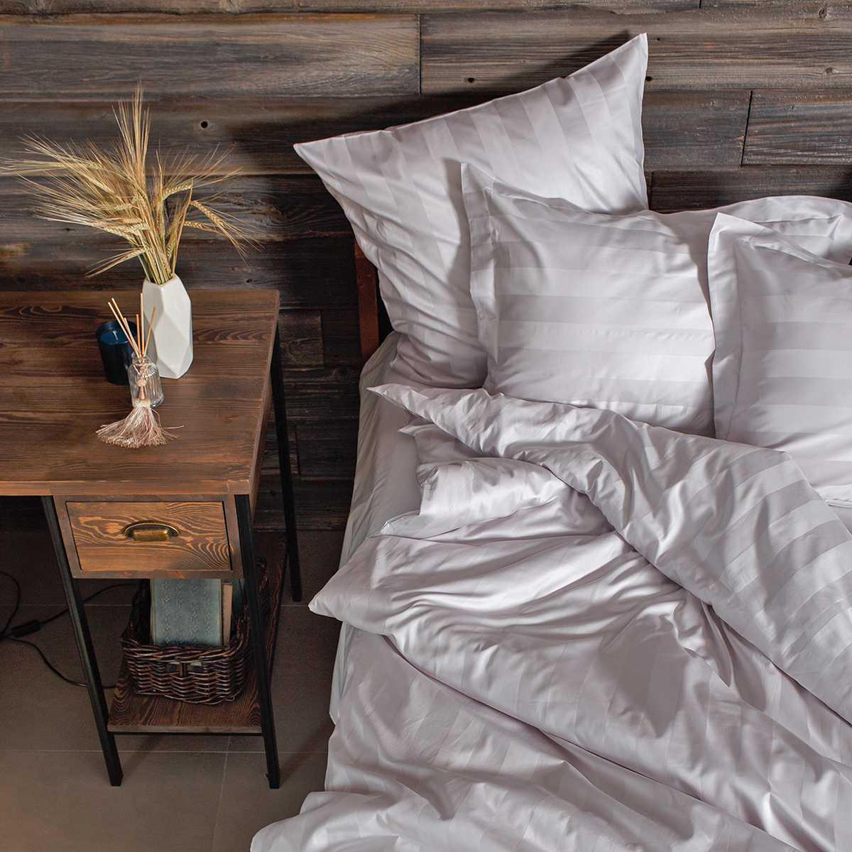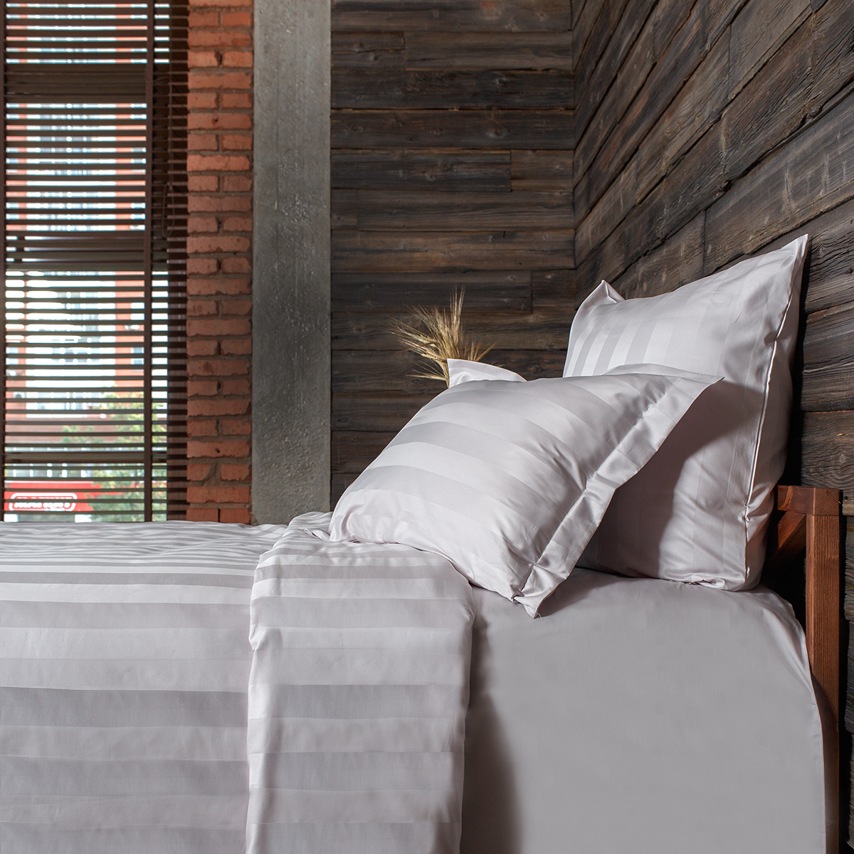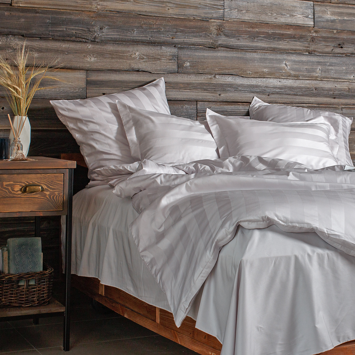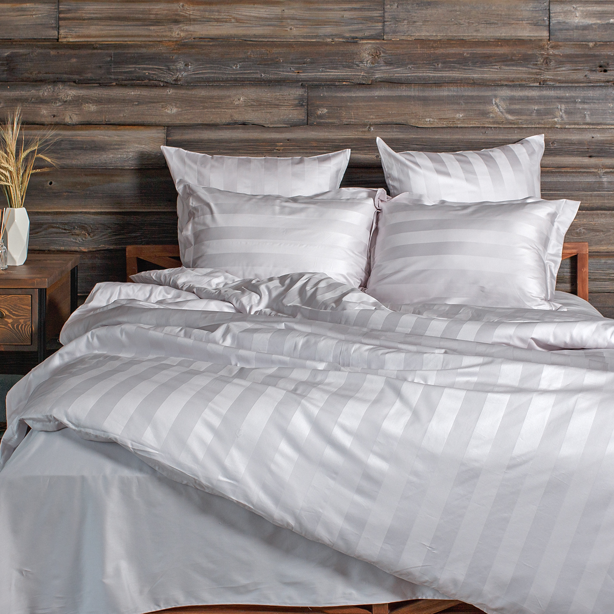 Однотонный комплект постельного белья - роскошный 100% египетский хлопок высшего сорта, с жаккардовым рисунком в виде полос 5х5см. Используется более тонкая 60-я нить. За счет специальной скрутки нити, ткань получается очень мягкая и приятная на ощупь. Имеет благородный блеск.