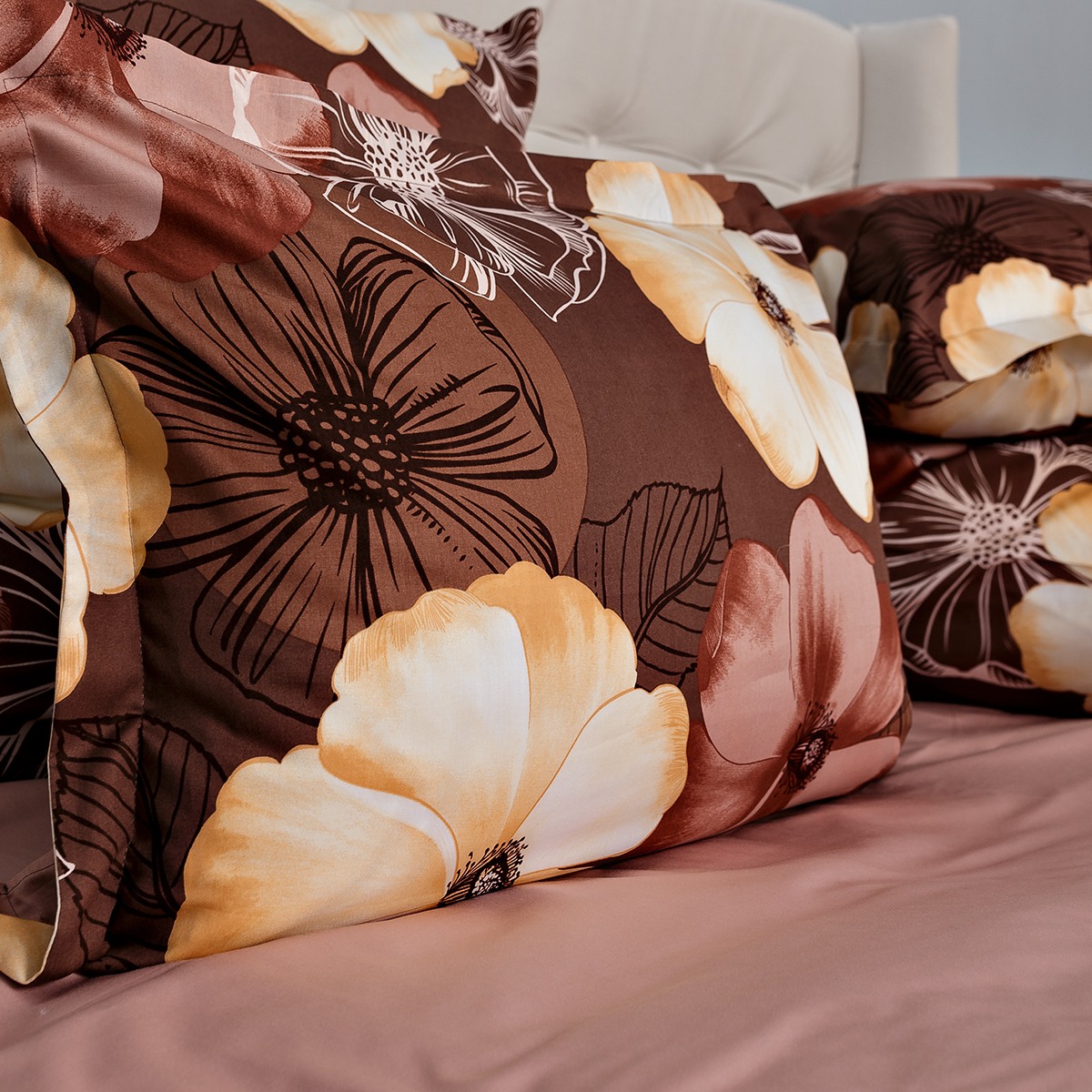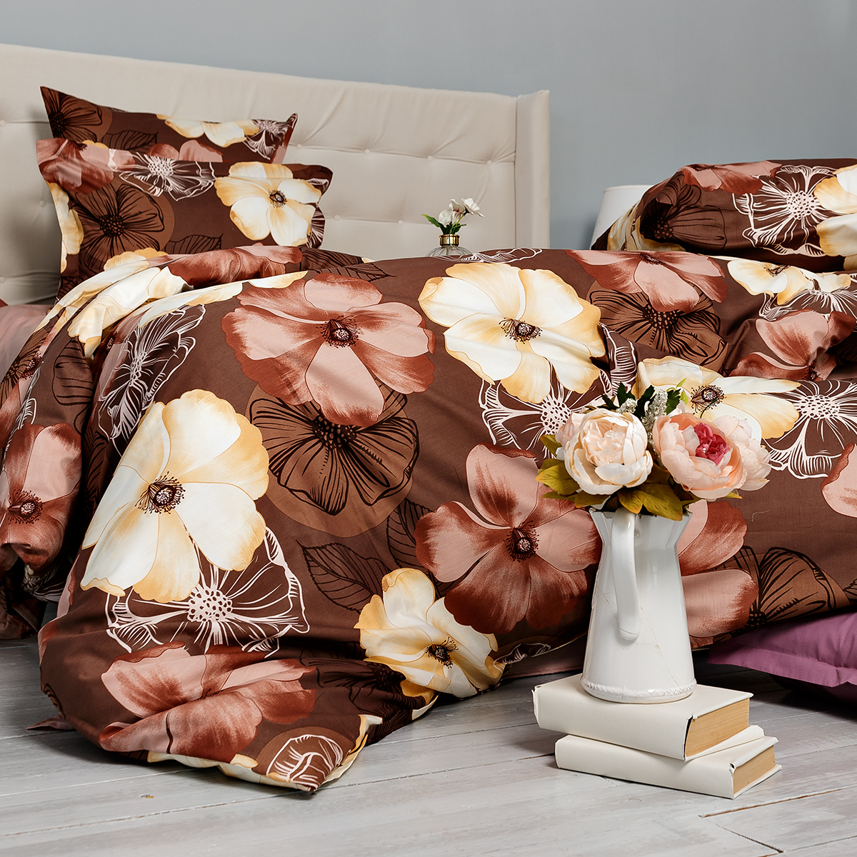 Благородный и глубокий шоколадный оттенок в сочетании с крупным цветочным принтом смотрится по-настоящему изысканно и вызывает самые приятные ассоциации, дарит тепло и чувство комфорта. Восхитительное ощущение гармонии и прекрасного настроения.