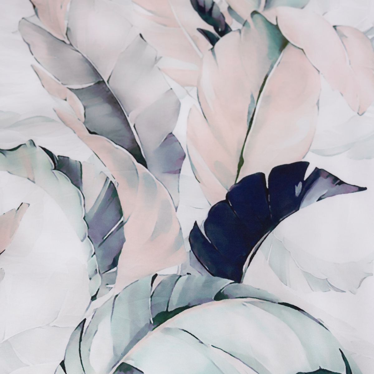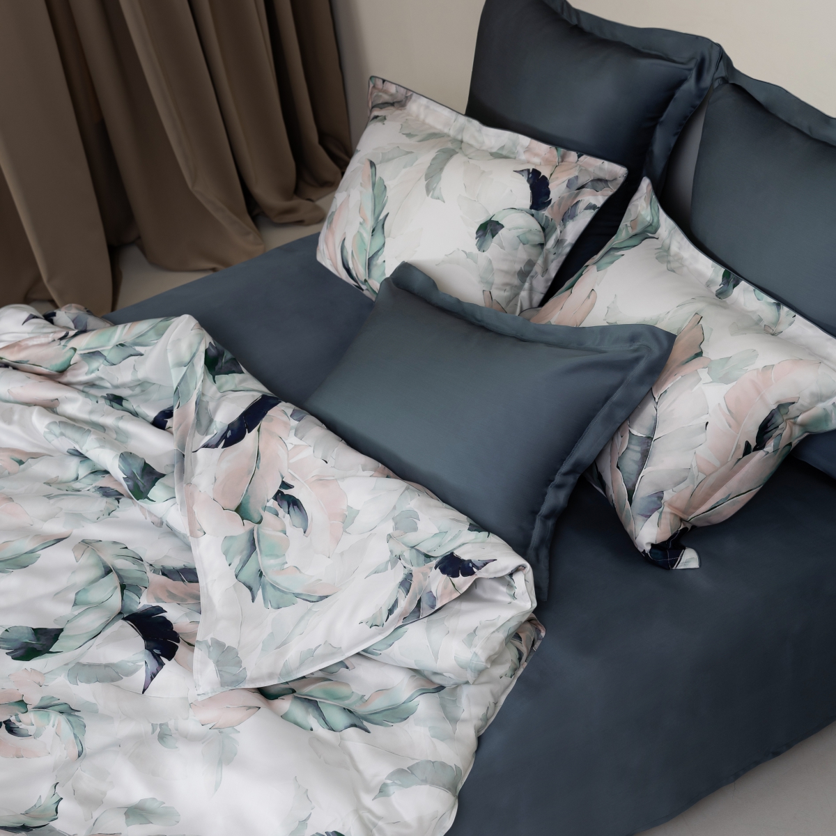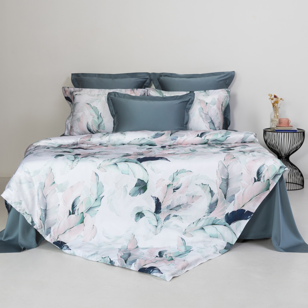 Нежный и воздушный дизайн, вдохновленный природной грацией, окунает в атмосферу утонченности и легкости. Акварельный принт с изящными листьями создает гармоничную и свежую композицию. Мягкая цветовая палитра и элегантные детали подчеркивают современный стиль и наполняют пространство ощущением спокойствия. Идеальный выбор для тех, кто ценит природную эстетику и мечтает о легкой, уютной атмосфере в спальне.