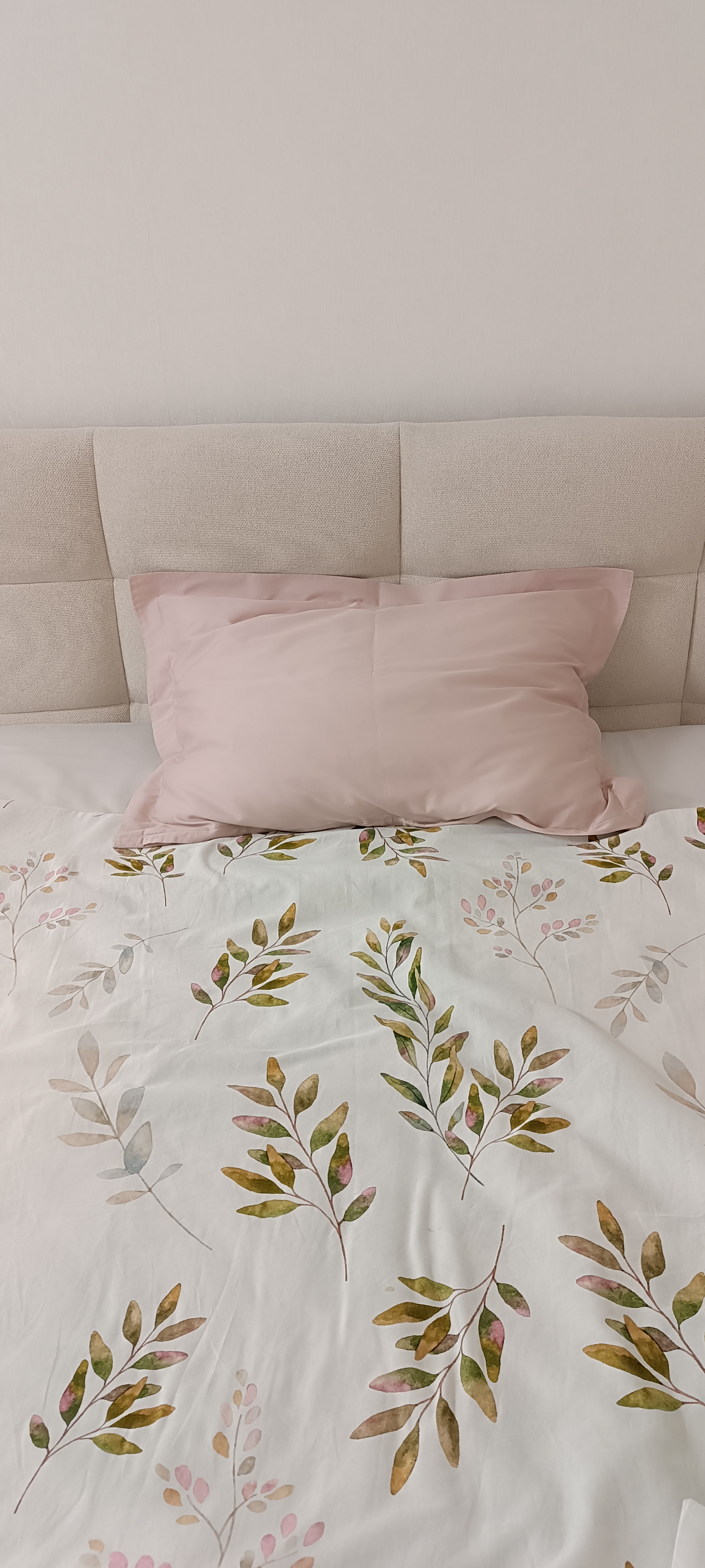 Покупала комплект розовых наволочек из мако сатина. Ткань прекрасного качества, а ещё сами наволочки были сложены в мешочек из этой же ткани. Он мне тоже пригодится в хозяйстве. Спасибо за такую милую заботу ! Моя камера цвет наволочки сильно искажает , на самом деле цвет более приятный.