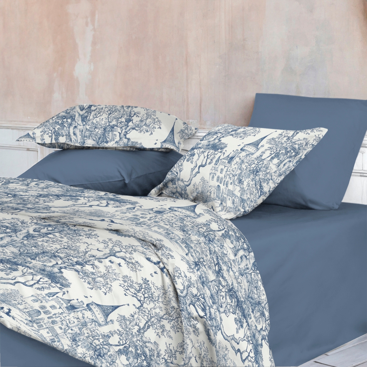 Коллет - словно оживший эскиз из альбома парижской художницы XVIII века, где каждый синий завиток хранит тайну. Это постельное бельё, которое хочется разглядывать часами, находя новые детали — как изучают старинную картину под разными углами, открывая скрытые символы и следы кисти мастера.