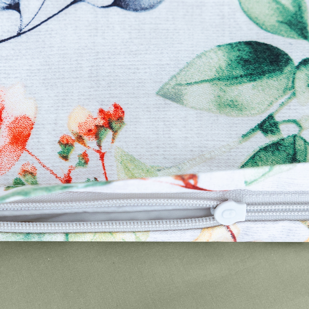• «Невидимая» молния во всю ширину по нижнему краю пододеяльника. Для быстрой и удобной смены постельного белья в верхней части пододеяльника расположены клапаны для рук. Сменить пододеяльник можно за 30 секунд.