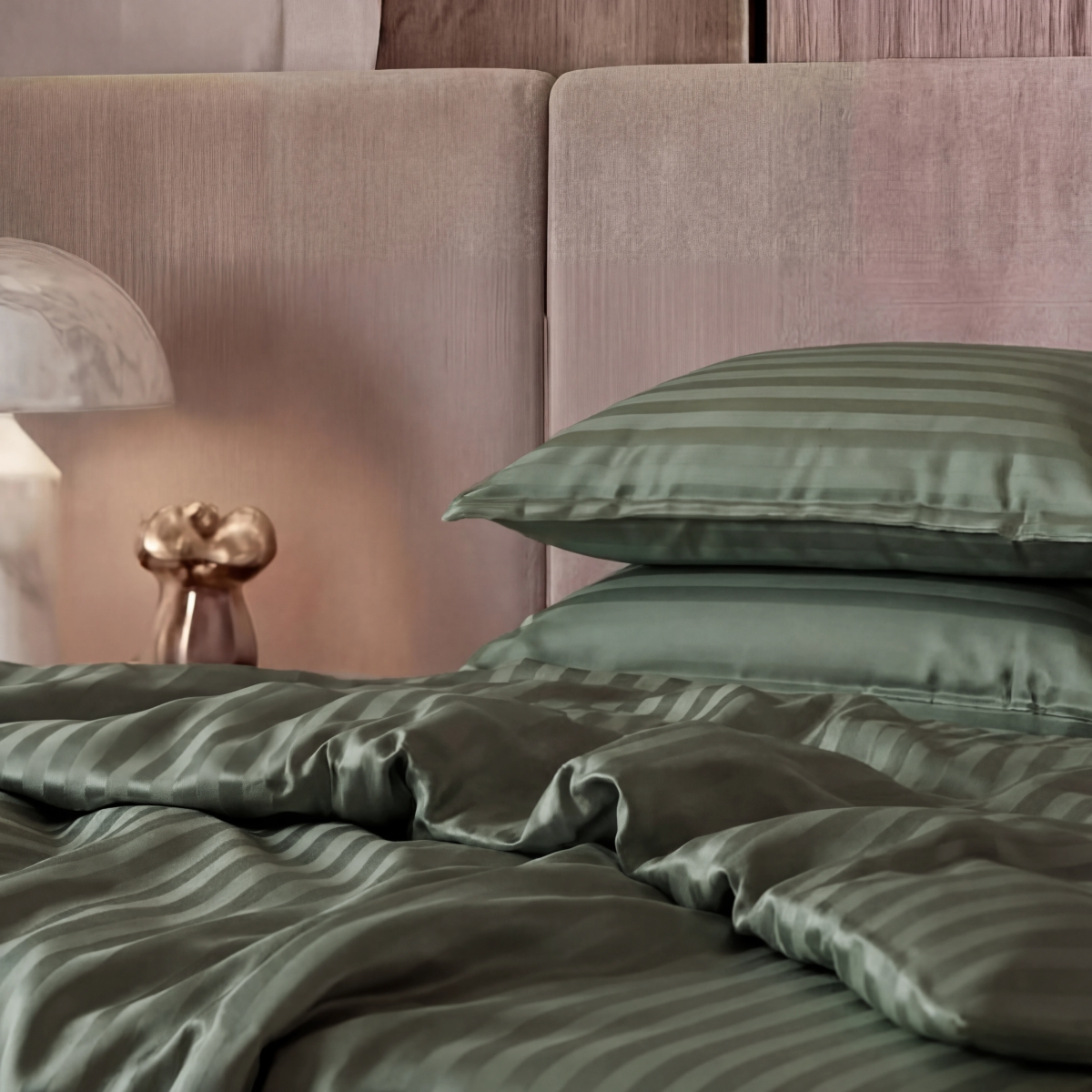 Постельное бельё Cатин | ПОСТЕЛЬНОЕ БЕЛЬЁ СТРАЙП-САТИН ЗЕЛЕНЫЙ