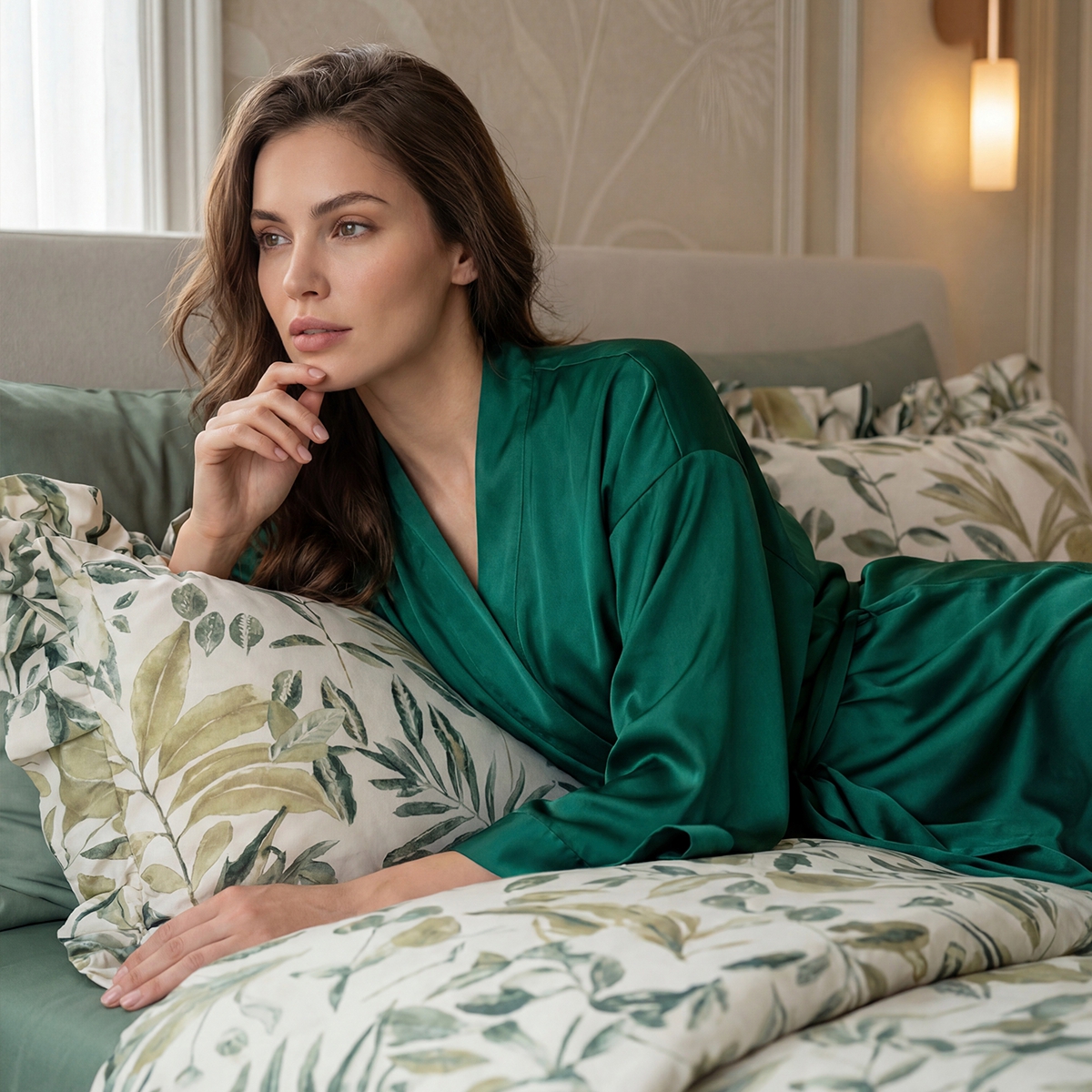 Эта ткань гипоаллергенна, не требует специального ухода – легко стирается и гладится. Пропускает воздух и поддерживает комфортную температуру тела, когда вы спите.