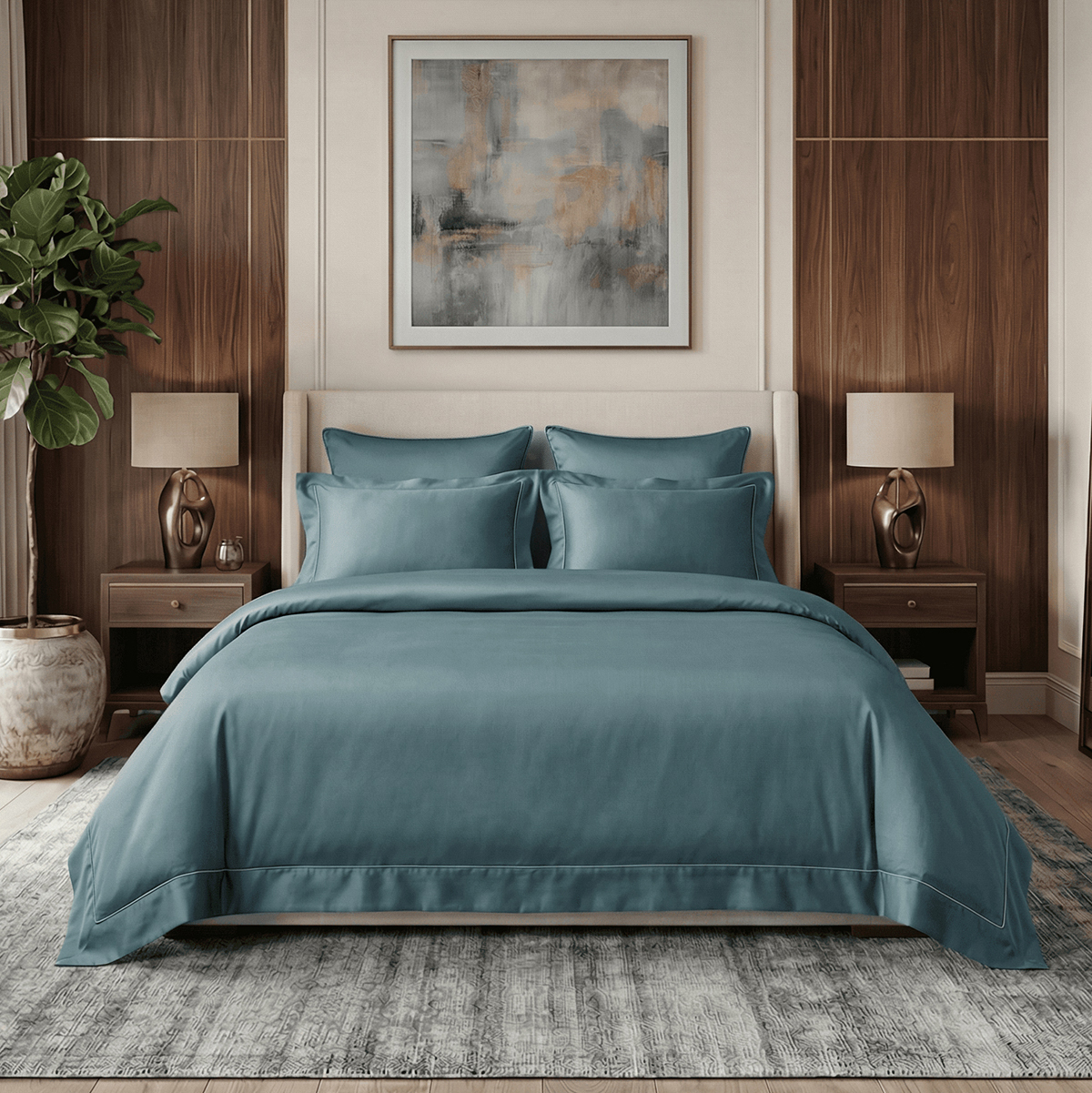 Редкий длинноволокнистый хлопок: нити прочнее и тоньше обычного, поэтому ткань не пиллингуется и не теряет форму. Сатиновое плетение создаёт живое сияние, как у шёлка, но с комфортом дышащего хлопка. Не электризуется, не скользит, приятен к телу. Выдерживает 500+ стирок без потери яркости и мягкости.