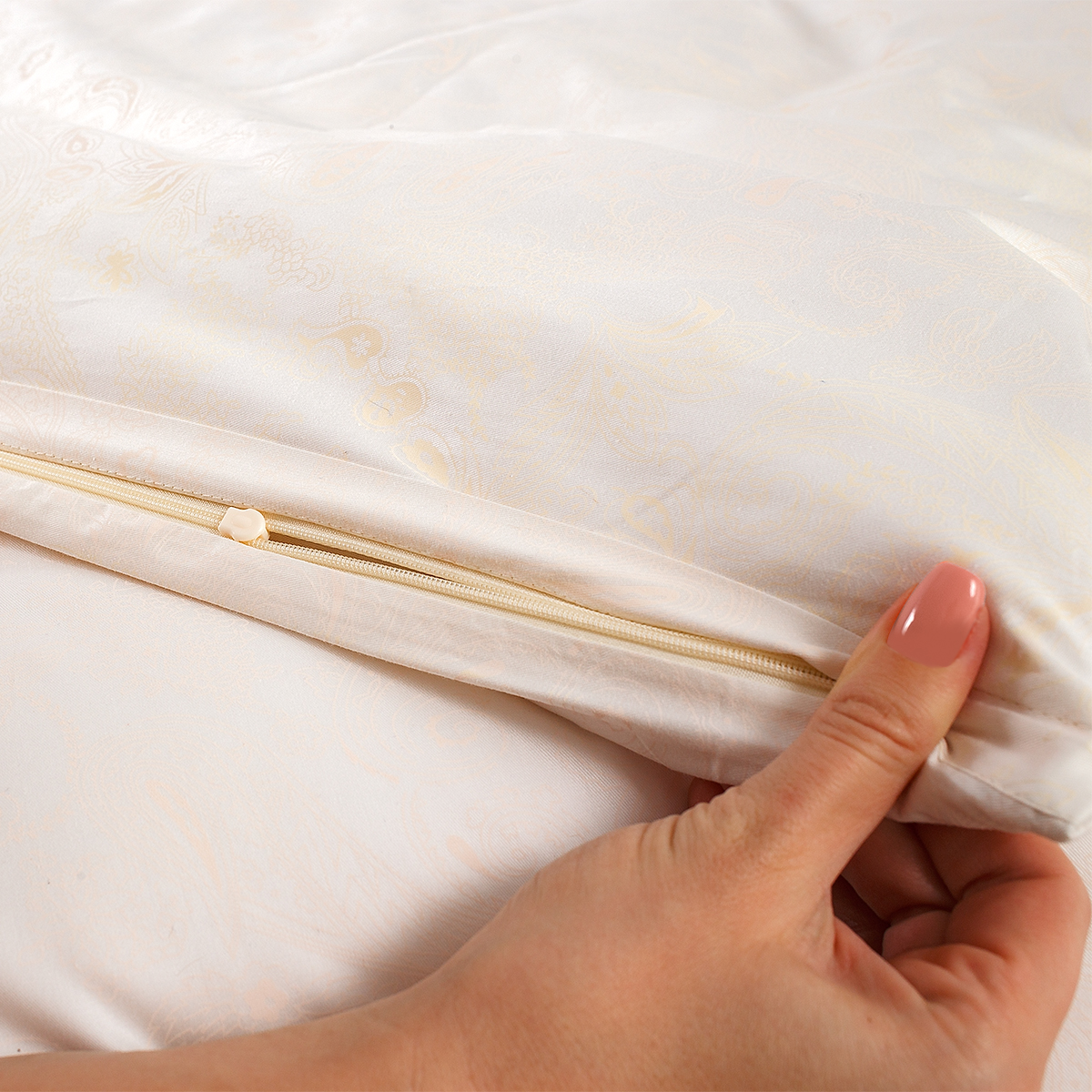 Наволочка произведена из ткани сатин – 100% хлопок. Благодаря сатиновому плетению двойной крученой нити хлопка, сатин – очень приятная, мягкая, но в то же время прочная ткань. Пропускает воздух, поддерживает комфортную температуру тела, когда вы спите.