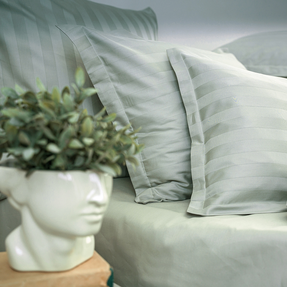 Однотонная стильная наволочка произведена из ткани страйп-сатин 100% хлопок с жаккардовым рисунком в виде полос 3х3 Благодаря специальному плетению - это гладкая, нежная и приятная на ощупь ткань.   Пропускает воздух, поддерживает комфортную температуру тела, когда вы спите.