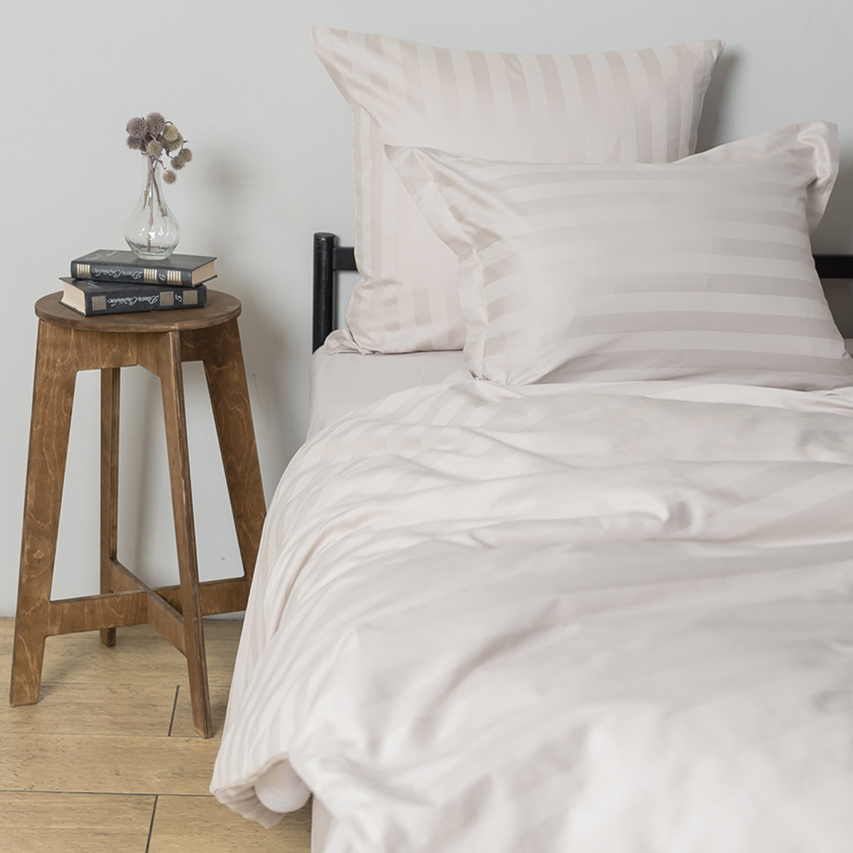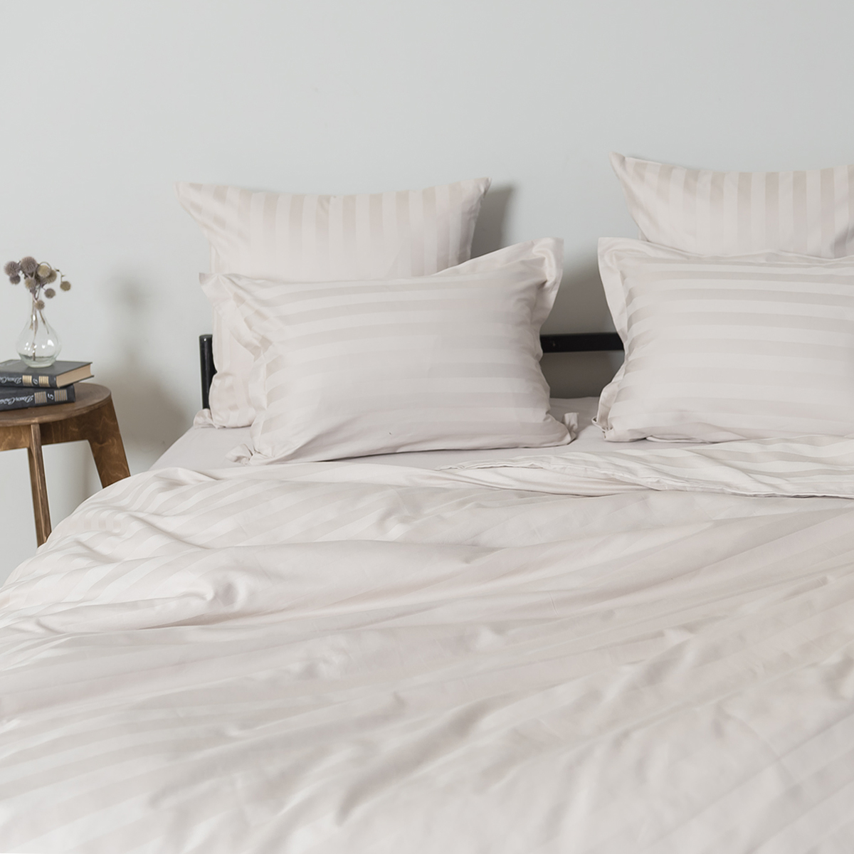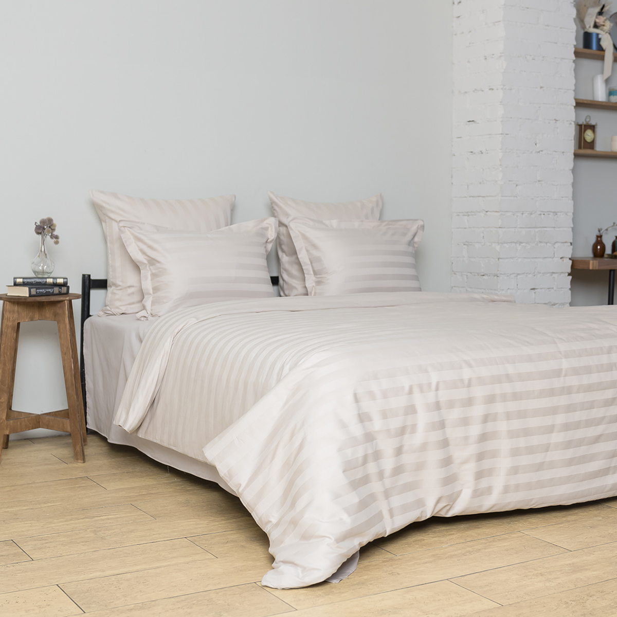 Однотонный стильный пододеяльник произведен из ткани страйп-сатин – 100% хлопок с жаккардовым рисунком в виде полос 3х3