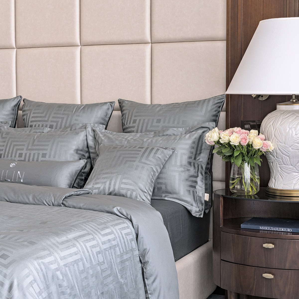• Лицевая сторона наволочек и пододеяльника выполнена из роскошного жаккарда, оборотная из однотонного хлопка сорта Pima