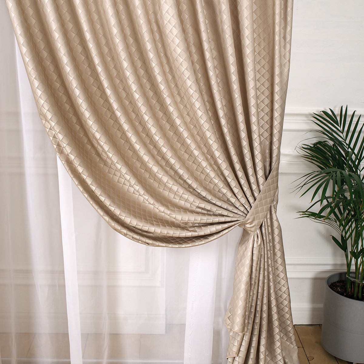 Готовые шторы отшиты на ленте – её можно стягивать и подстраивать под размер окна. Шторная лента, в свою очередь, является прекрасным помощником в создании объемной драпировки. Рекомендуемая длина карниза 250-300см. Низ штор обработан оверлоком для самостоятельного подгона изделия по высоте.