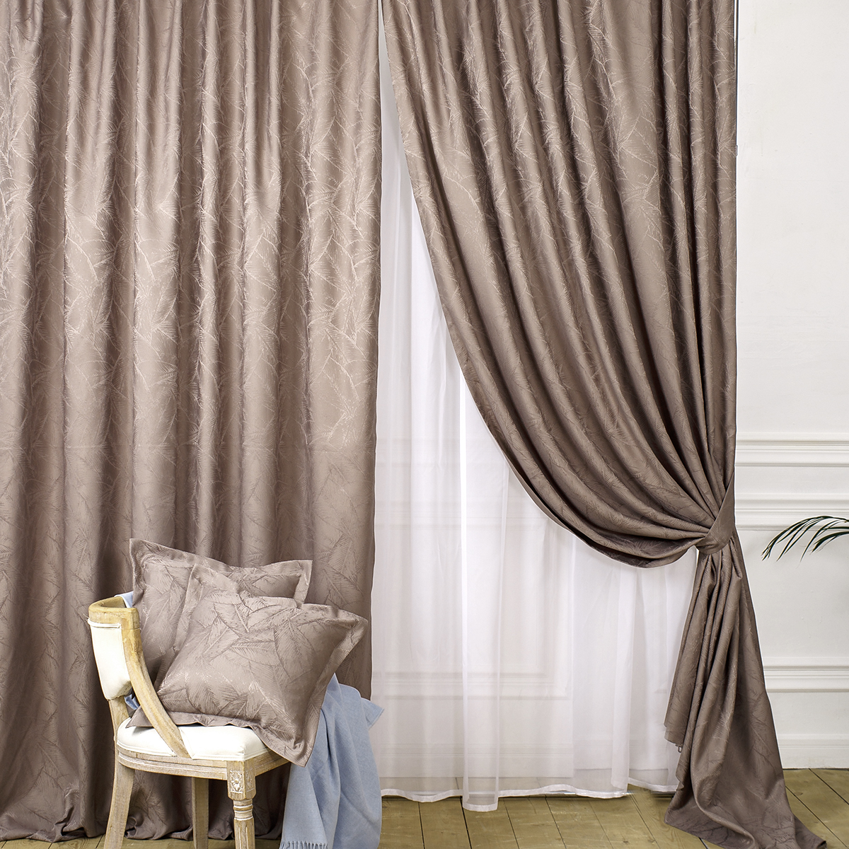 Растительный жаккардовый орнамент, совершенство природных линий, благородная фактурная поверхность и естественная мягкость оттенков придают особую гармоничность и шарм интерьеру.