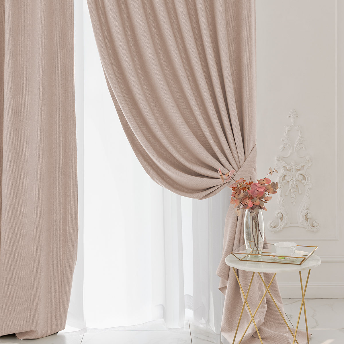 Состав: ткань портьерная 100% пэ – димаут. 80% затемнение и защита от света с улицы (искусственное ночное освещение блокируется полностью, рассеивает прямые солнечные лучи, наполняя интерьер приятным мягким светом).