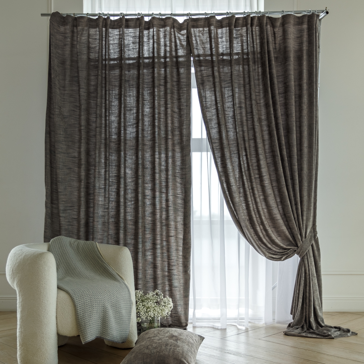 Выразительная игра света и мягкости гармонично воплощена в роскошной коллекции штор, она будто преобразует пространство, придавая ему благородный шик.