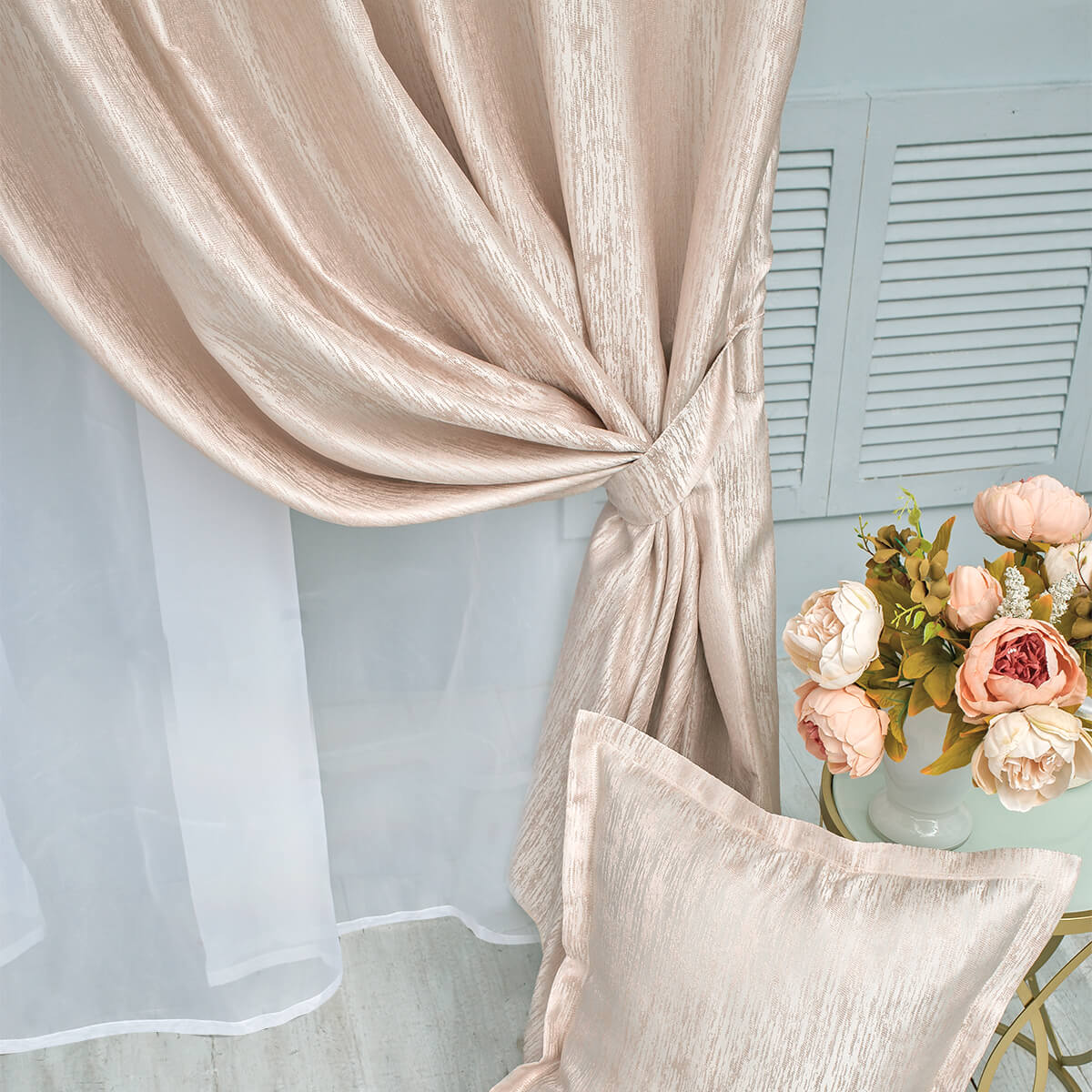 Шторы представлены в 2 цветах: бежево-розовом и жемчужно-розовом.